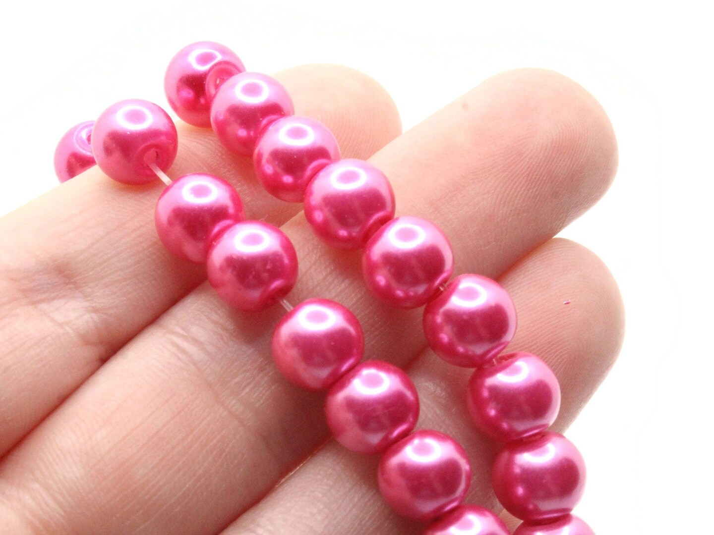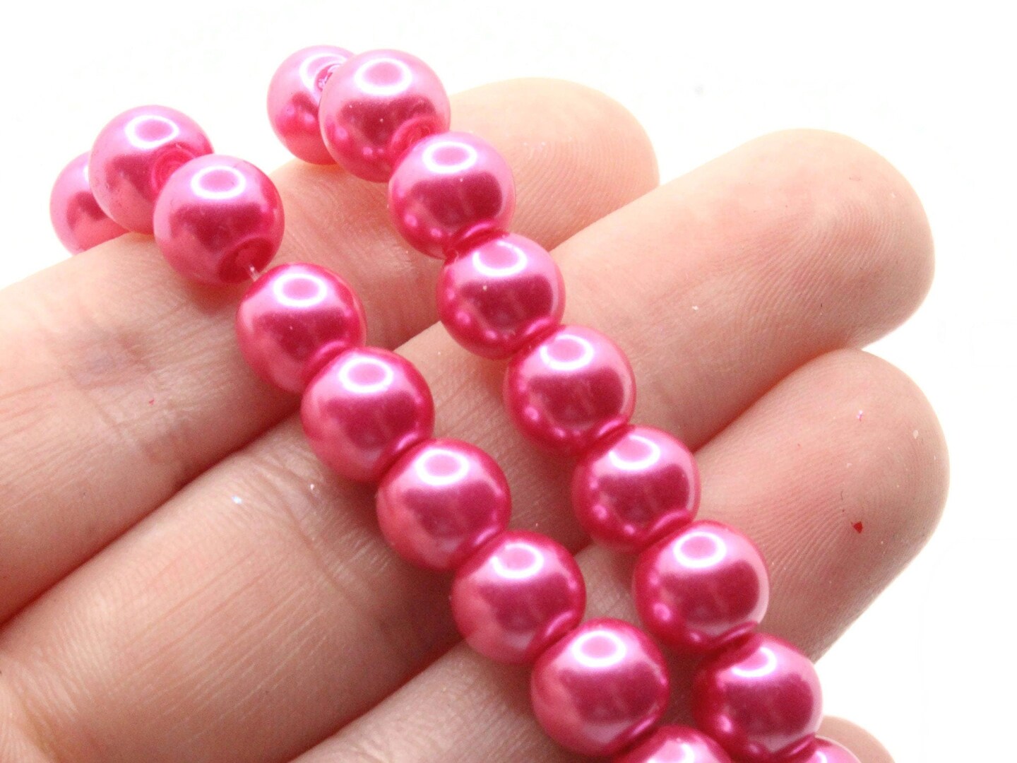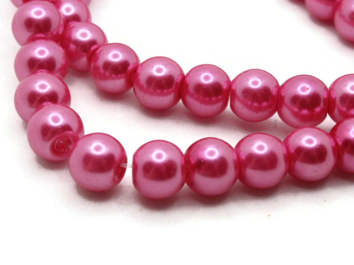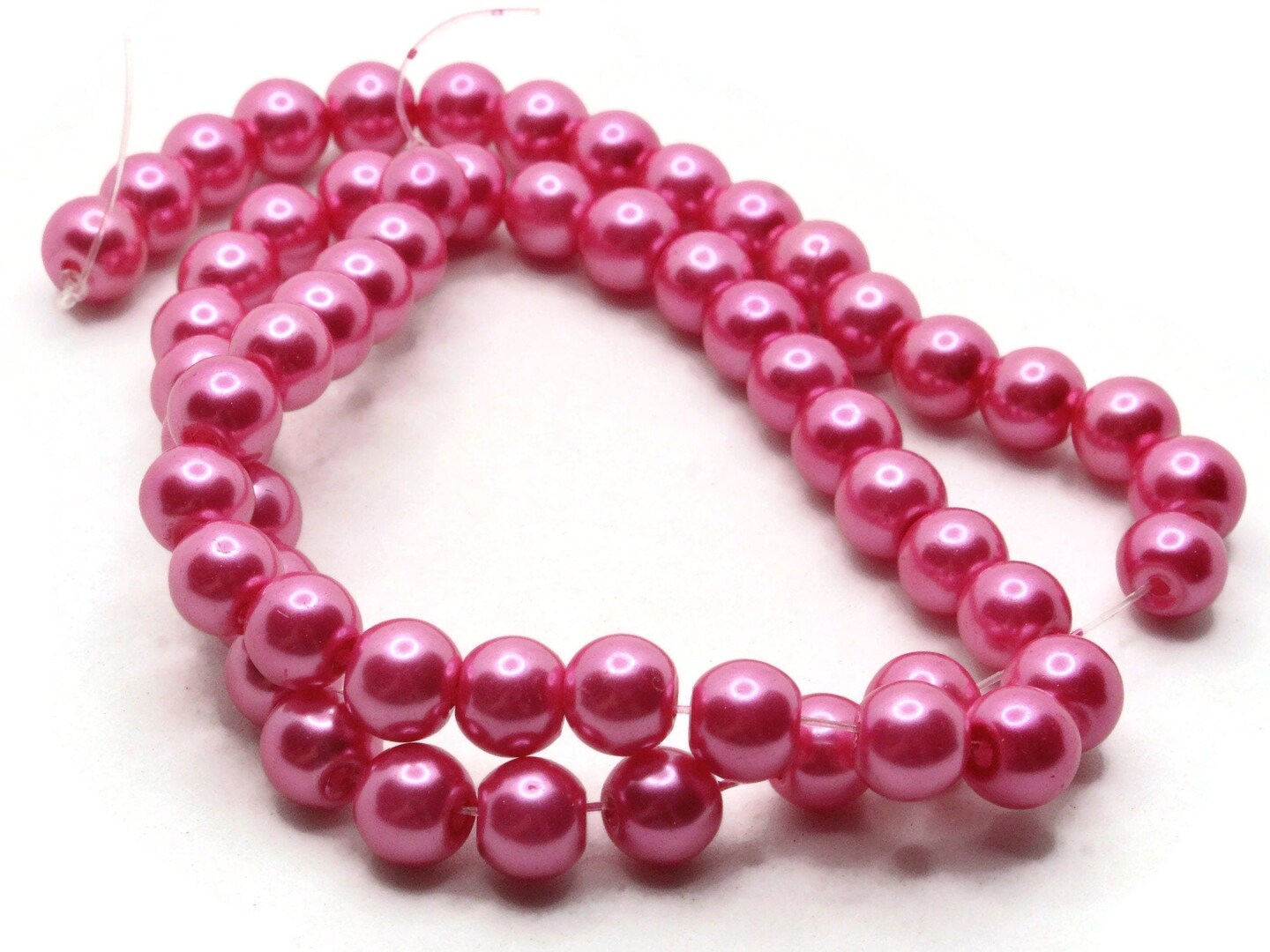 53 8mm Bright Pink Glass Round Pearl Beads