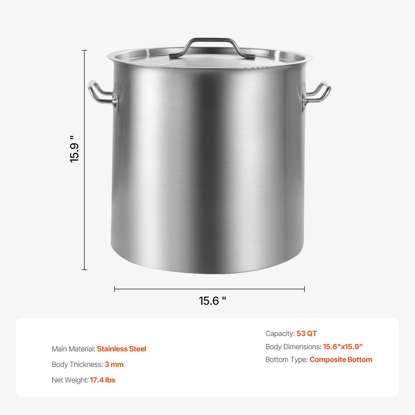 53 QT Commercial Stainless Steel Stock Pot for Boiling Steaming Frying and Cooking Large Meals