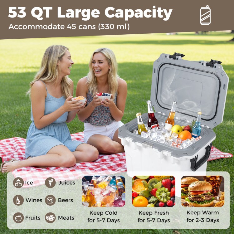 53 QT Hard Ice Chest Cooler with Leakproof Seal, Bottle Holders and Opener