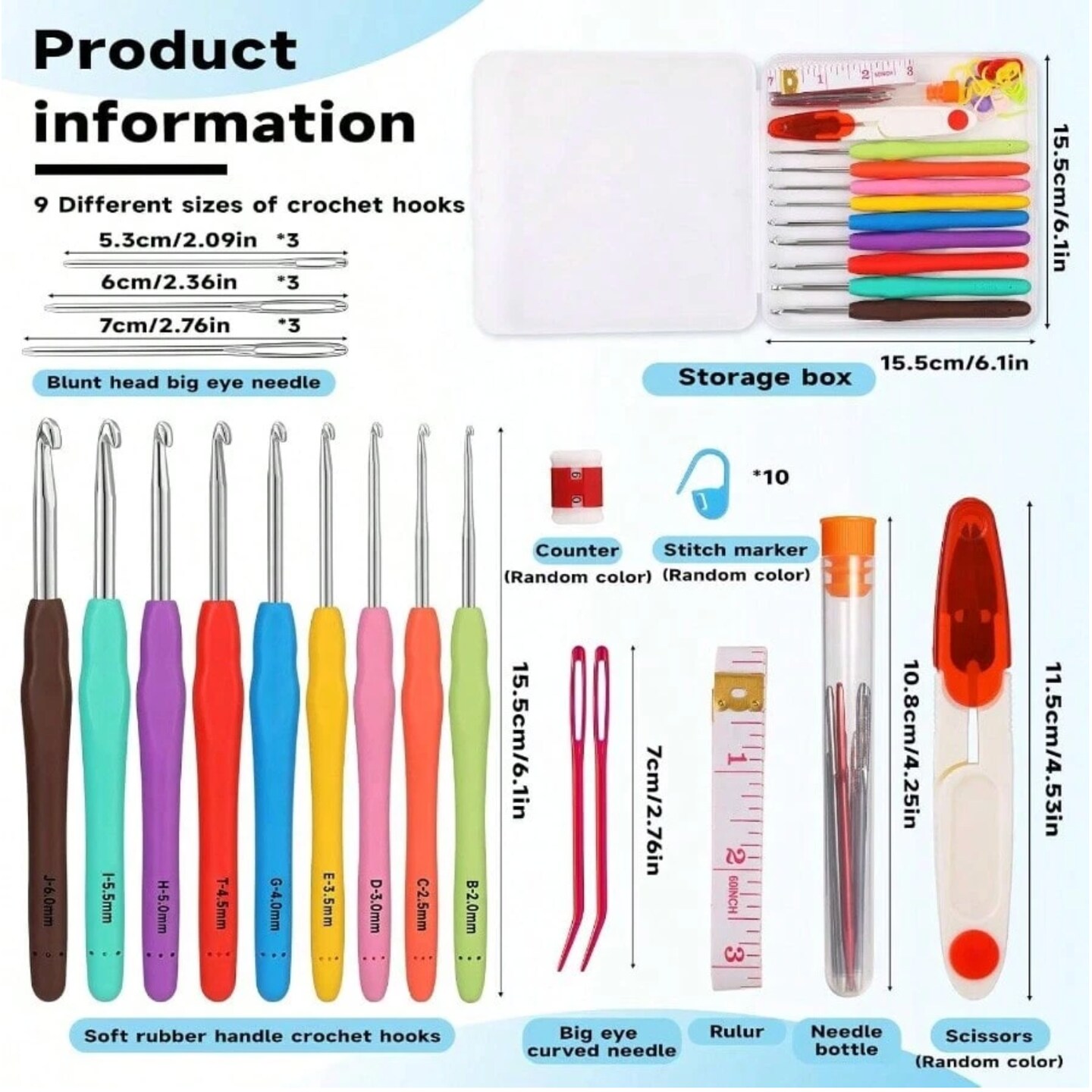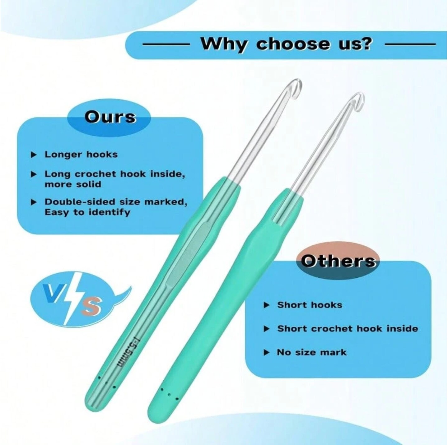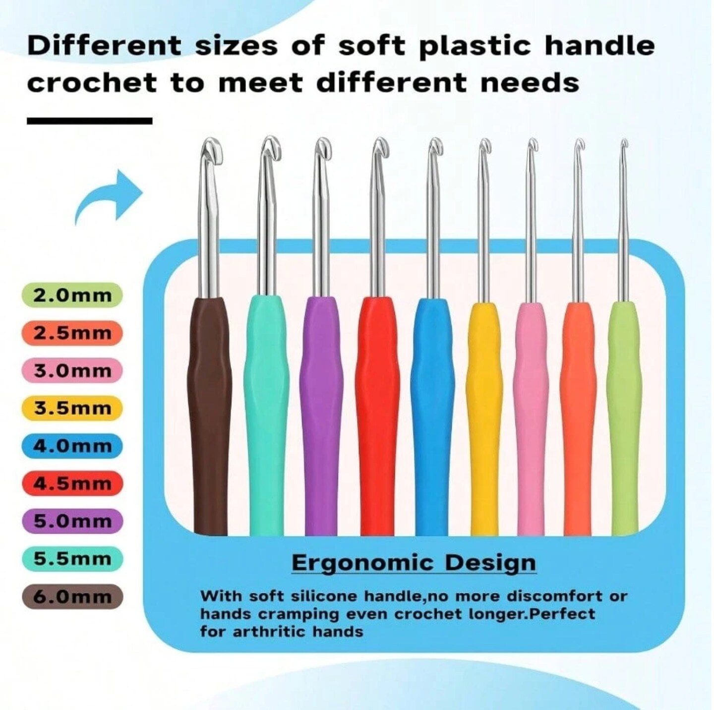 53-Piece Crochet Hook & Knitting Needle Set – 12 Sizes (2.0 mm–8.0 mm) with Ergonomic Handles for Beginners & Craft Lovers