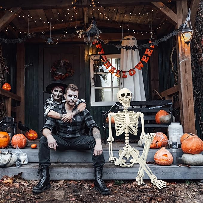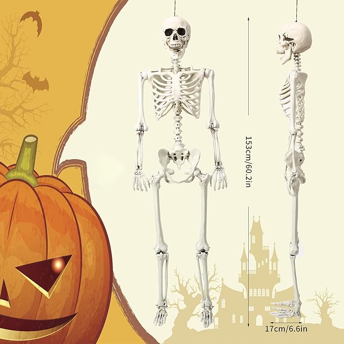 5.4 ft Posable Halloween Skeleton Decorations,Human Bones for Halloween Party with Movable Joints,for Haunted Houses, Front Lawn, Graveyard Props