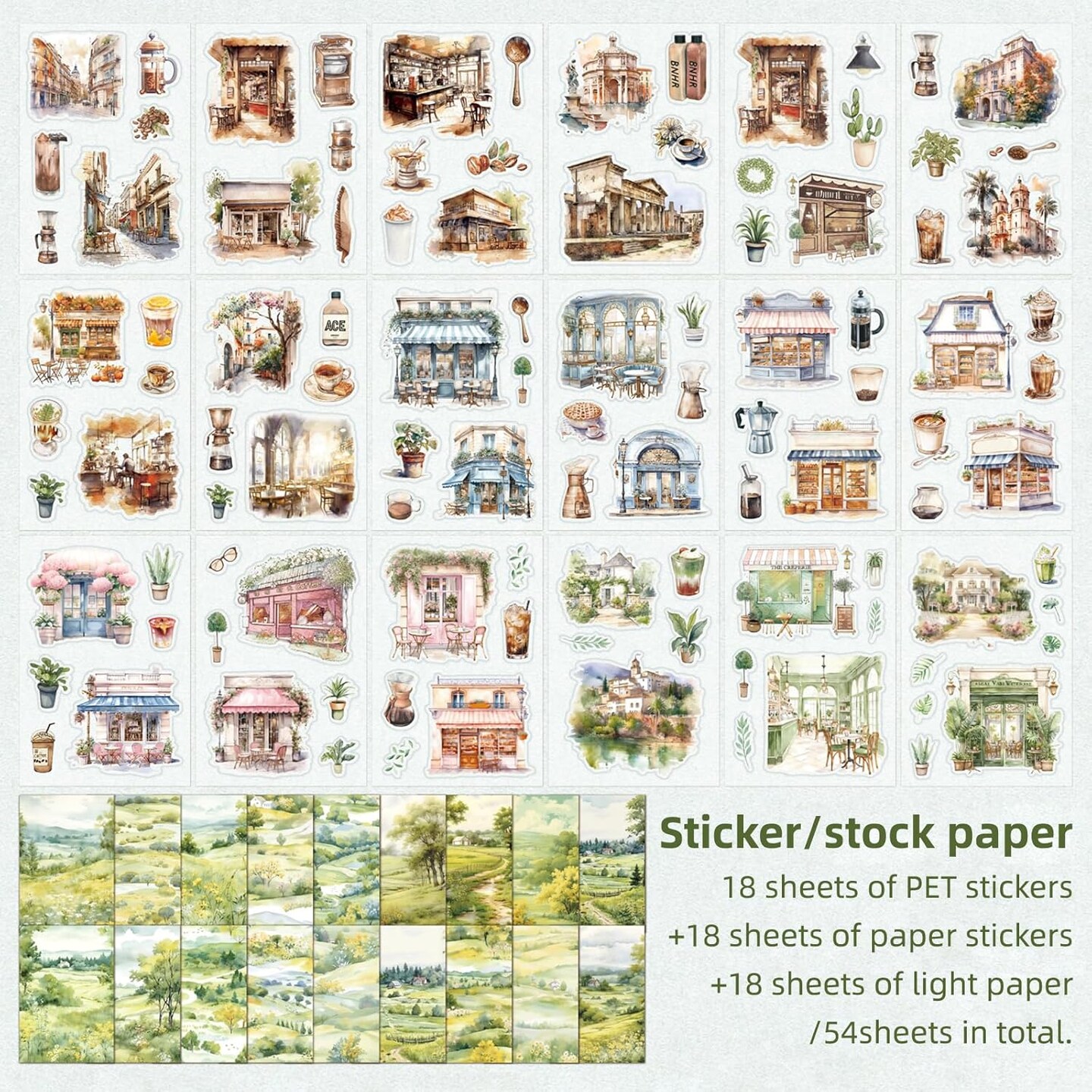 54 Sheets Forest Themed Scrapbook Stickers (Green) 6.7 x 4 x 0.4 inches