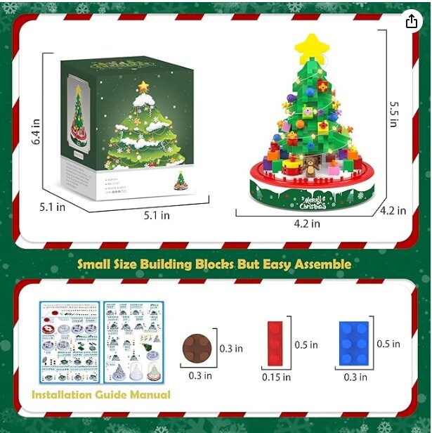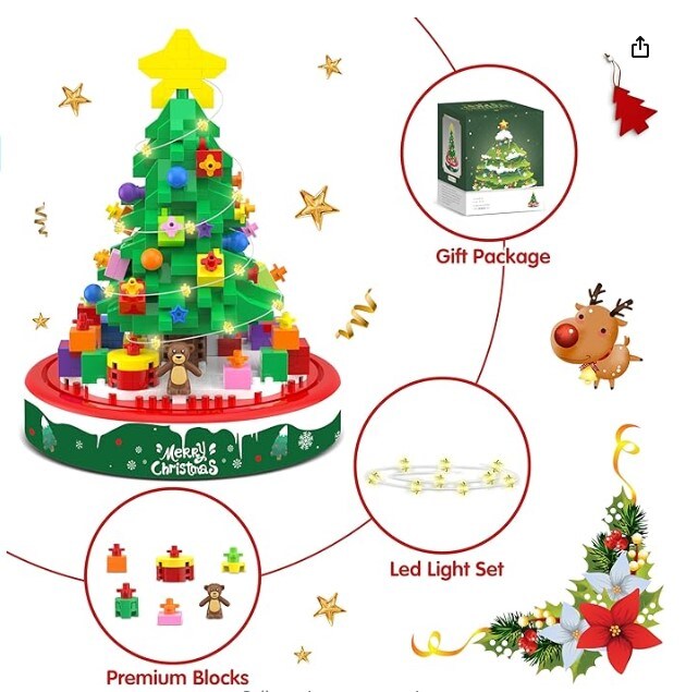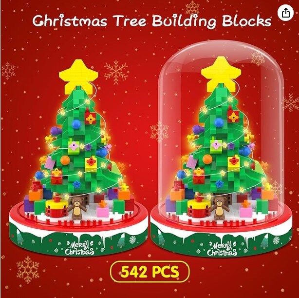 542 Christmas Tree Building Blocks Toy Building Sets Christmas Décor Building Kit with LED Light, Tabletop Christmas Tree Xmas Ornament Xmas Gifts Adult Stocking Stuffers for Children