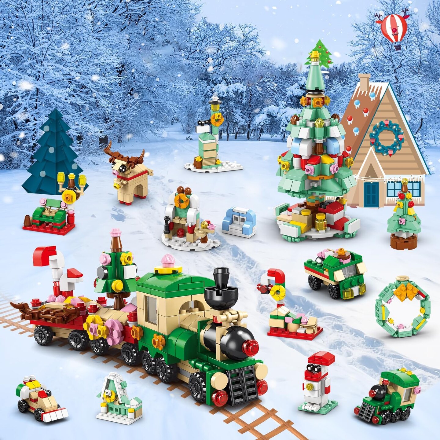 544 Piece Children's Christmas Advent Gifts 2024, STEM Play Sets, Christmas Themed Mini-Block Sets, Surprise Collection Party Atmosphere Gifts, for Kids Boys Girls Ages 6+