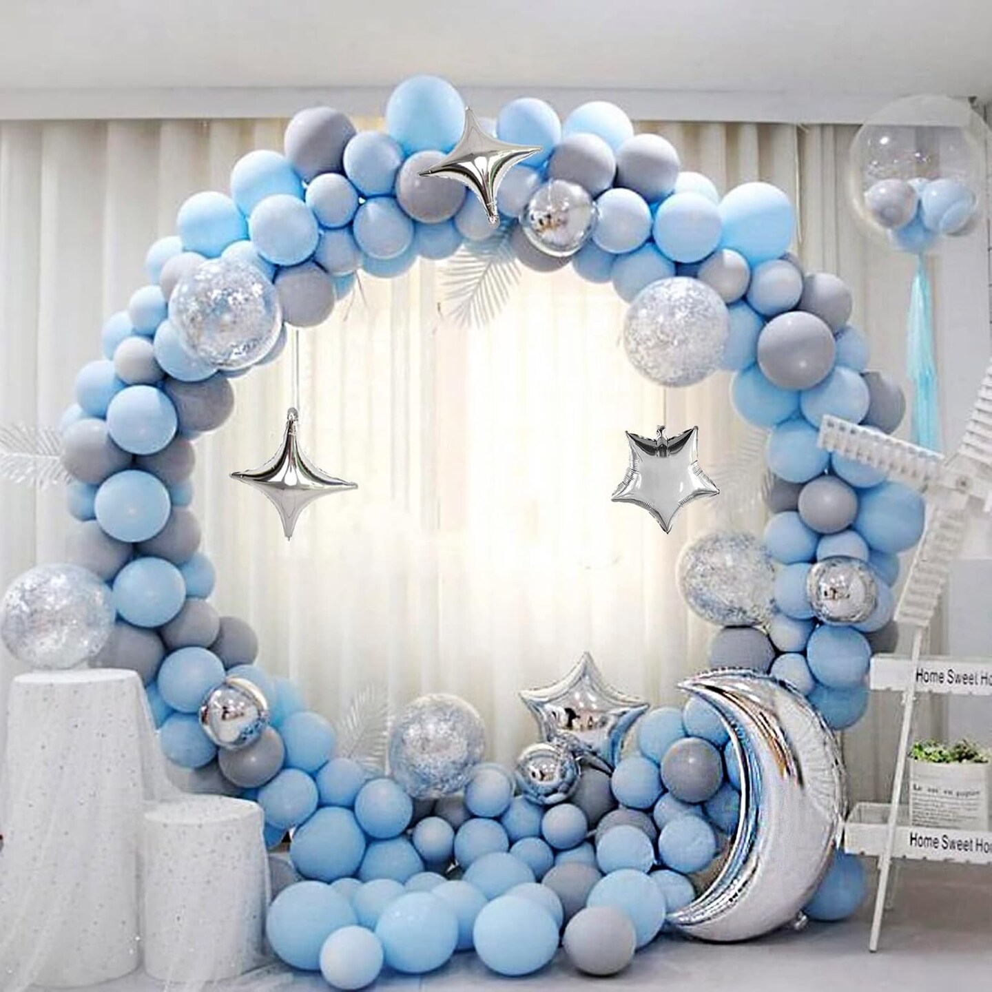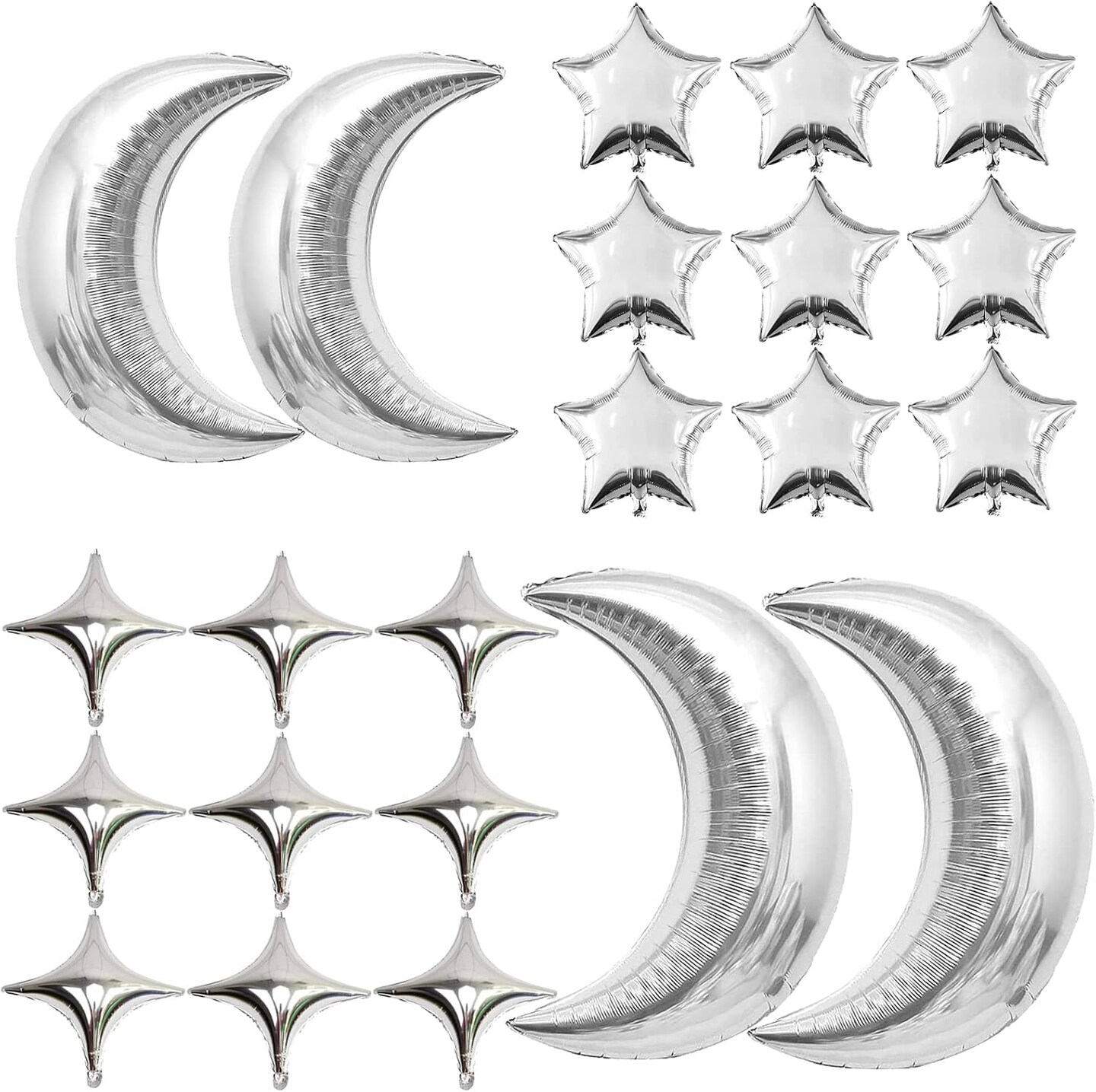 54Pcs Star Foil Balloons Moon Foil Mylar Balloons(silver)