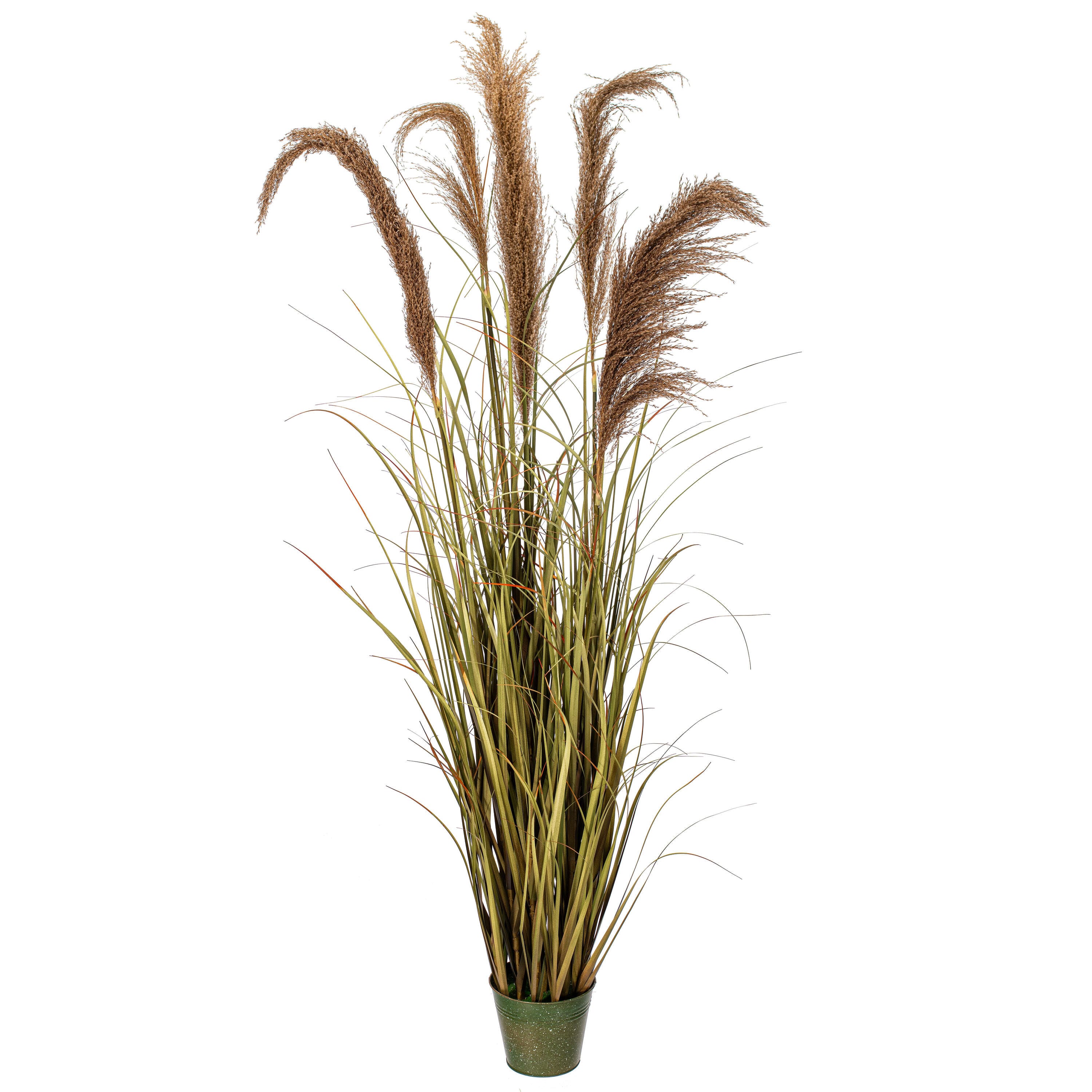 55" Artificial Green Grass & Natural Reeds in Iron Pot