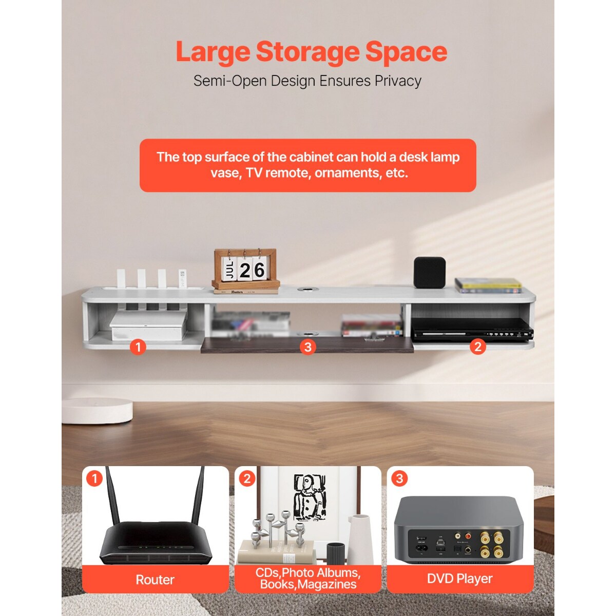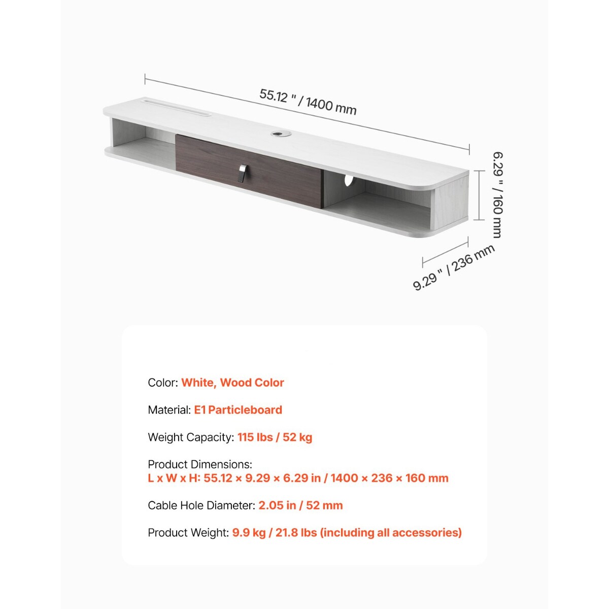 55 Inch Floating TV Stand with Storage Cabinet & Cable Hole