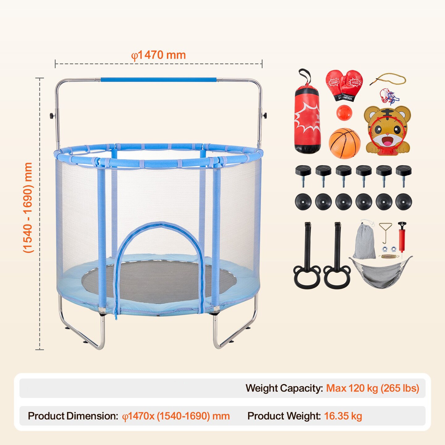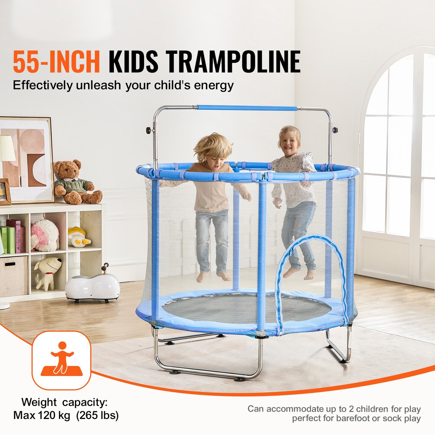 55 Inch Toddler Trampoline with Safety Net Basketball Hoop for Indoor Outdoor Use