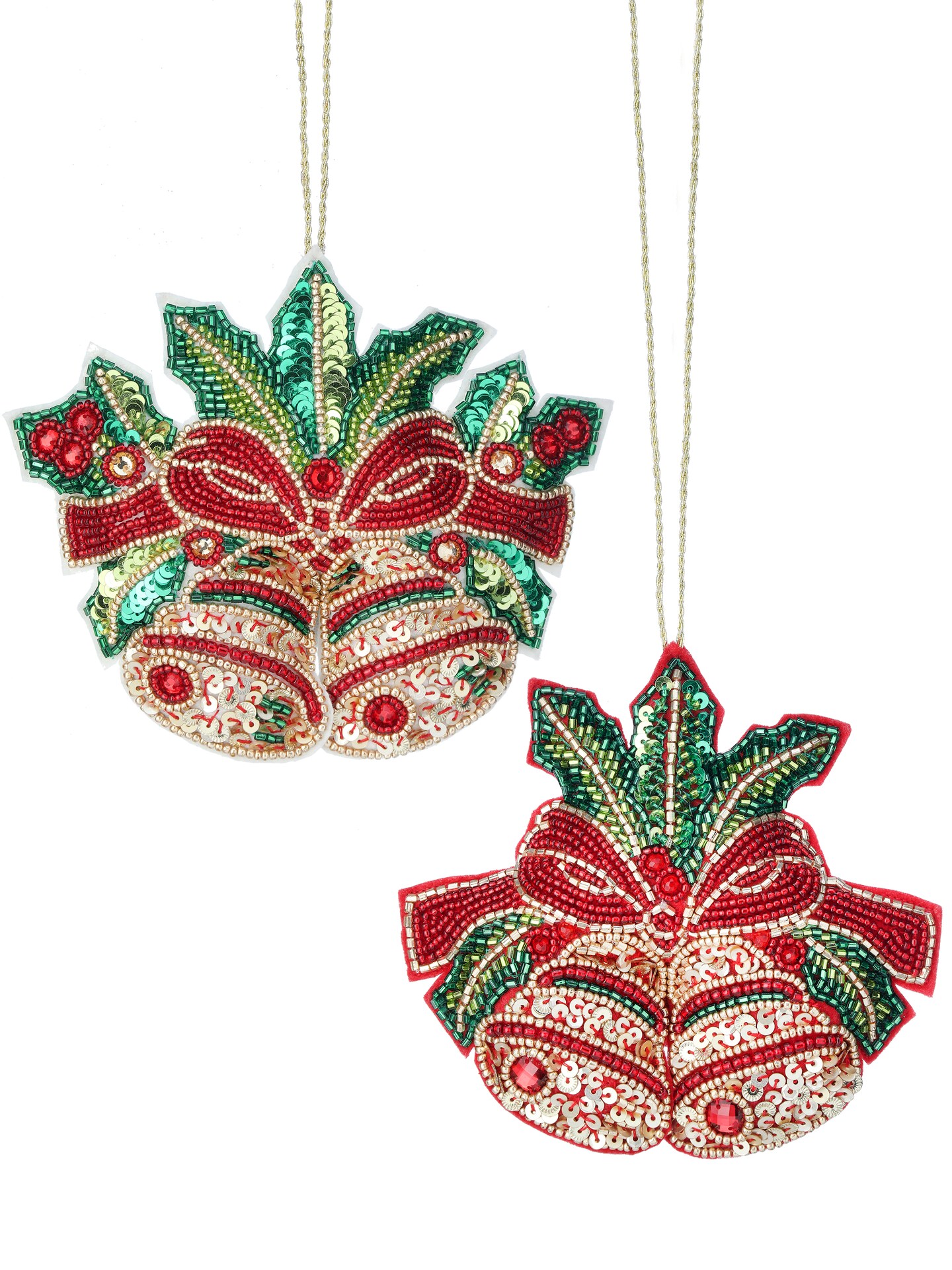5.5" Sequin W/ Bead Bell Ornament 2/Ast