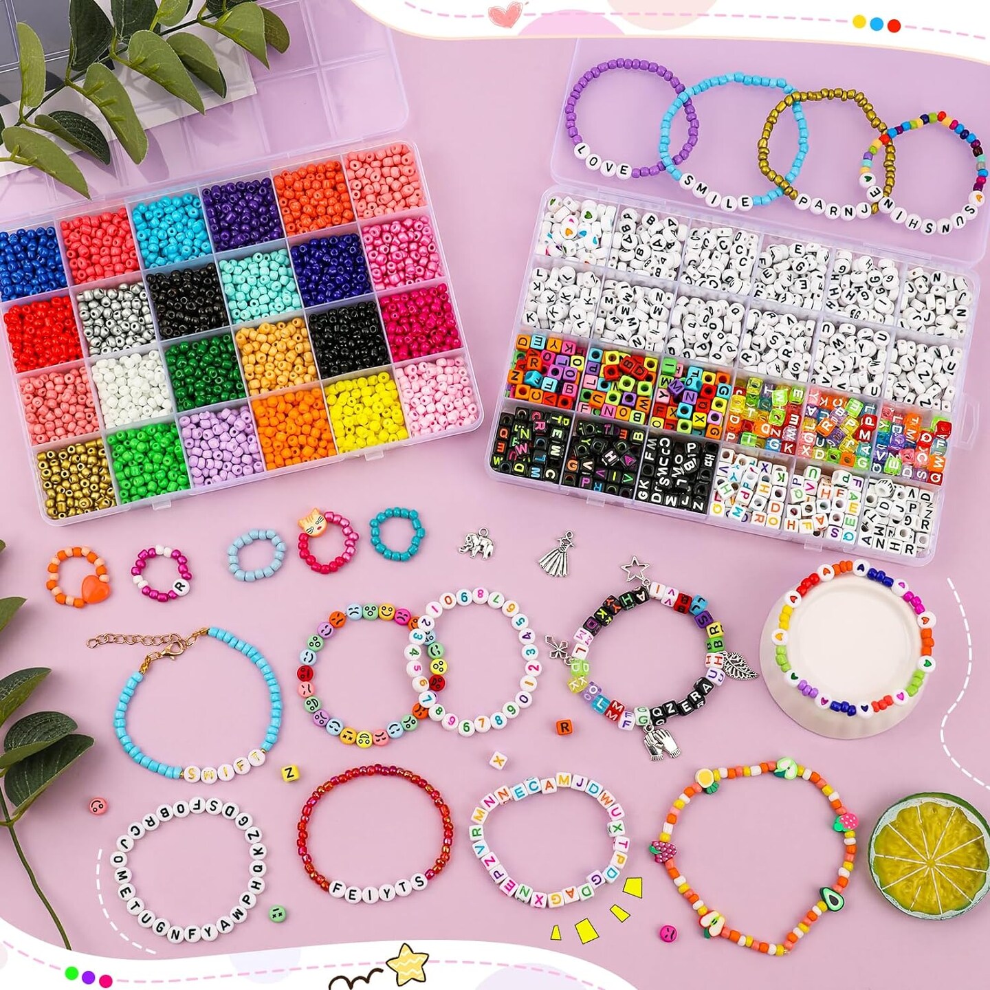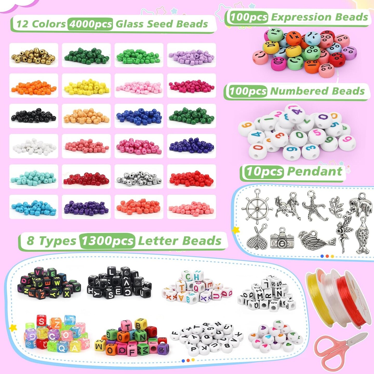 5500pcs Bracelet Making Kit,4 mm Glass Seed Beads and Letter Alphabet Beads,Expression Beads, Number Beads and Other Craft Beads,for Friendship Bracelets, Necklaces, Key Chains