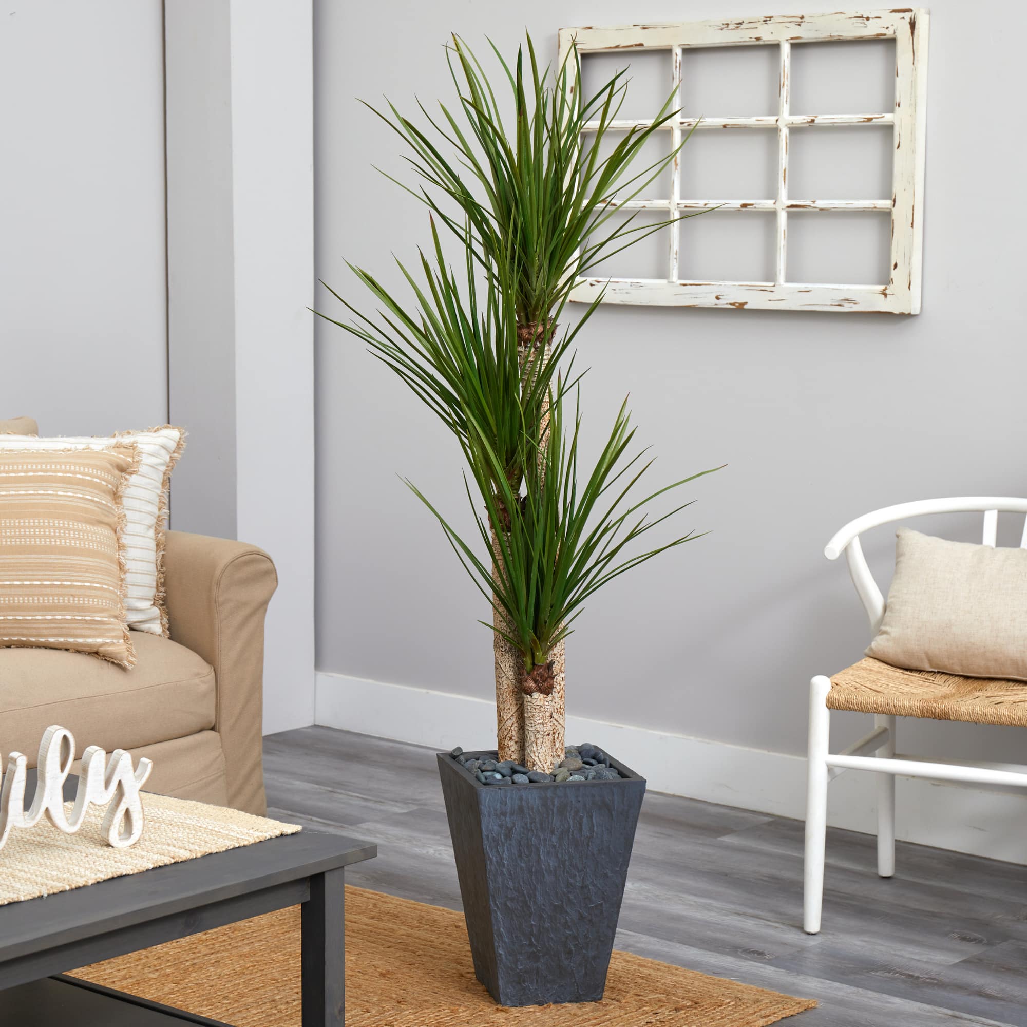 5.5ft. Triple Stalk Yucca Plant in Slate Planter