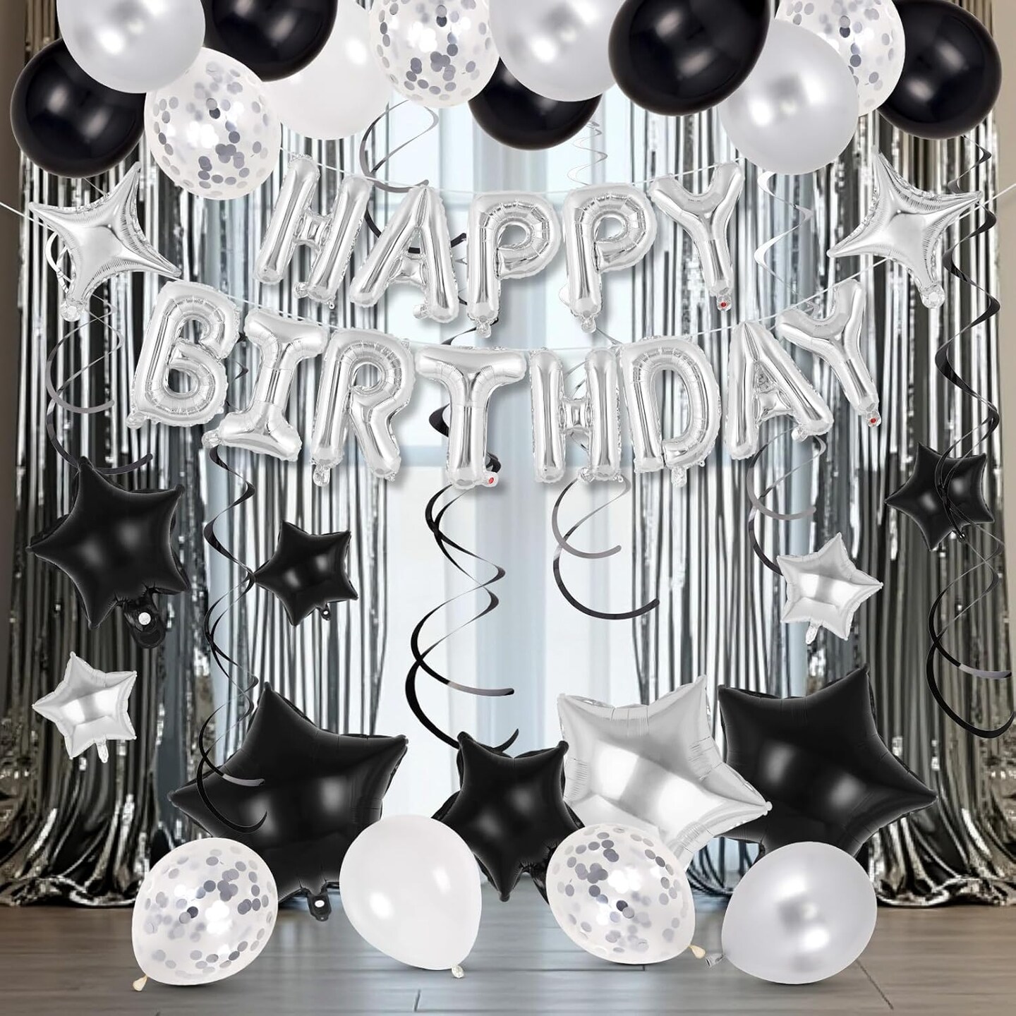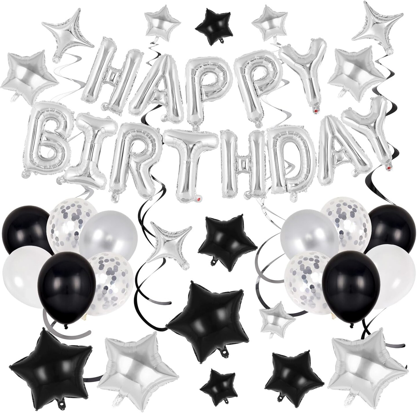 55-Piece Happy Birthday Balloon Set – Silver Foil Letters, Star Foil Balloons, Latex Balloons & Hanging Swirls for Birthday Party Decorations (Silver) 7 x 6 x 0.1 inches