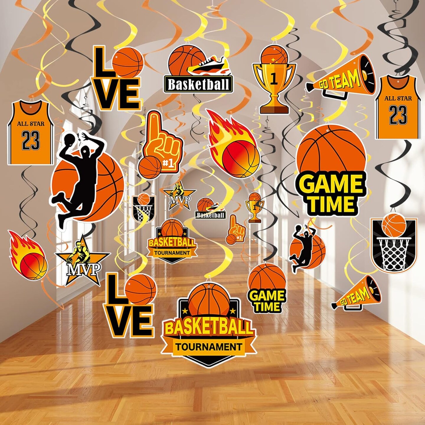 56 Pieces Basketball Party Decorations Hanging Swirls Basketball Decorations Paper Sports Party Decorations Cutouts Hanging Decors for Kids Boys Basketball Theme Birthday Party Supplies Favors