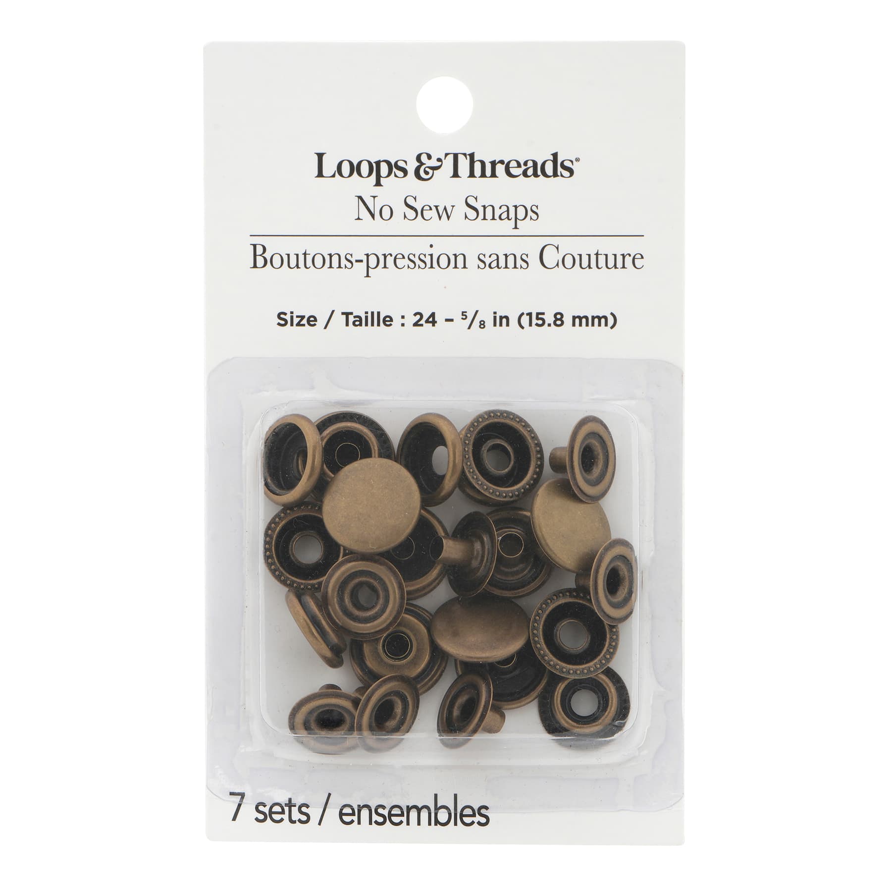 5/8" Antique Brass No Sew Snaps, 7ct. by Loops & Threads®