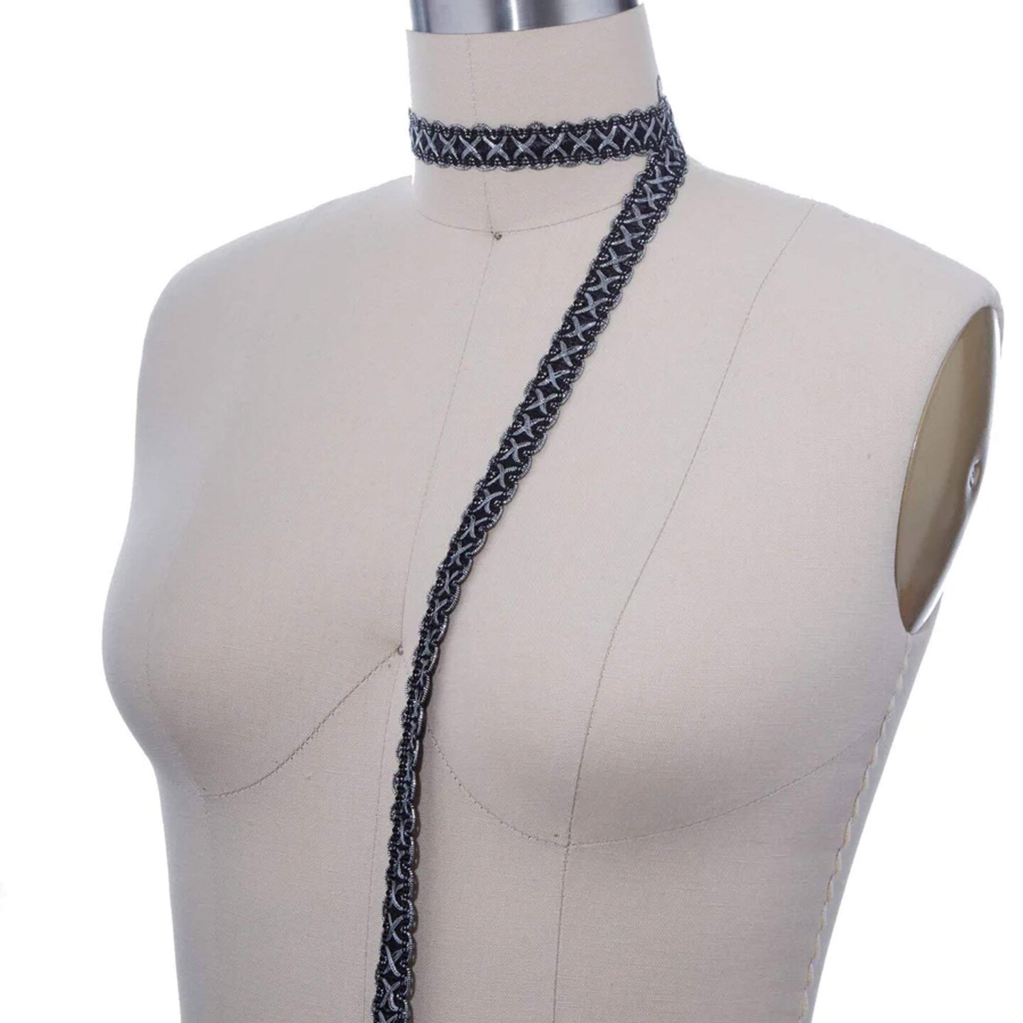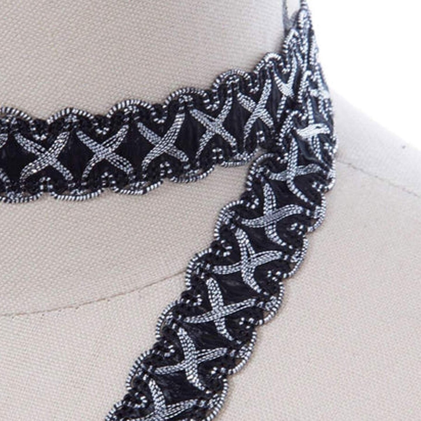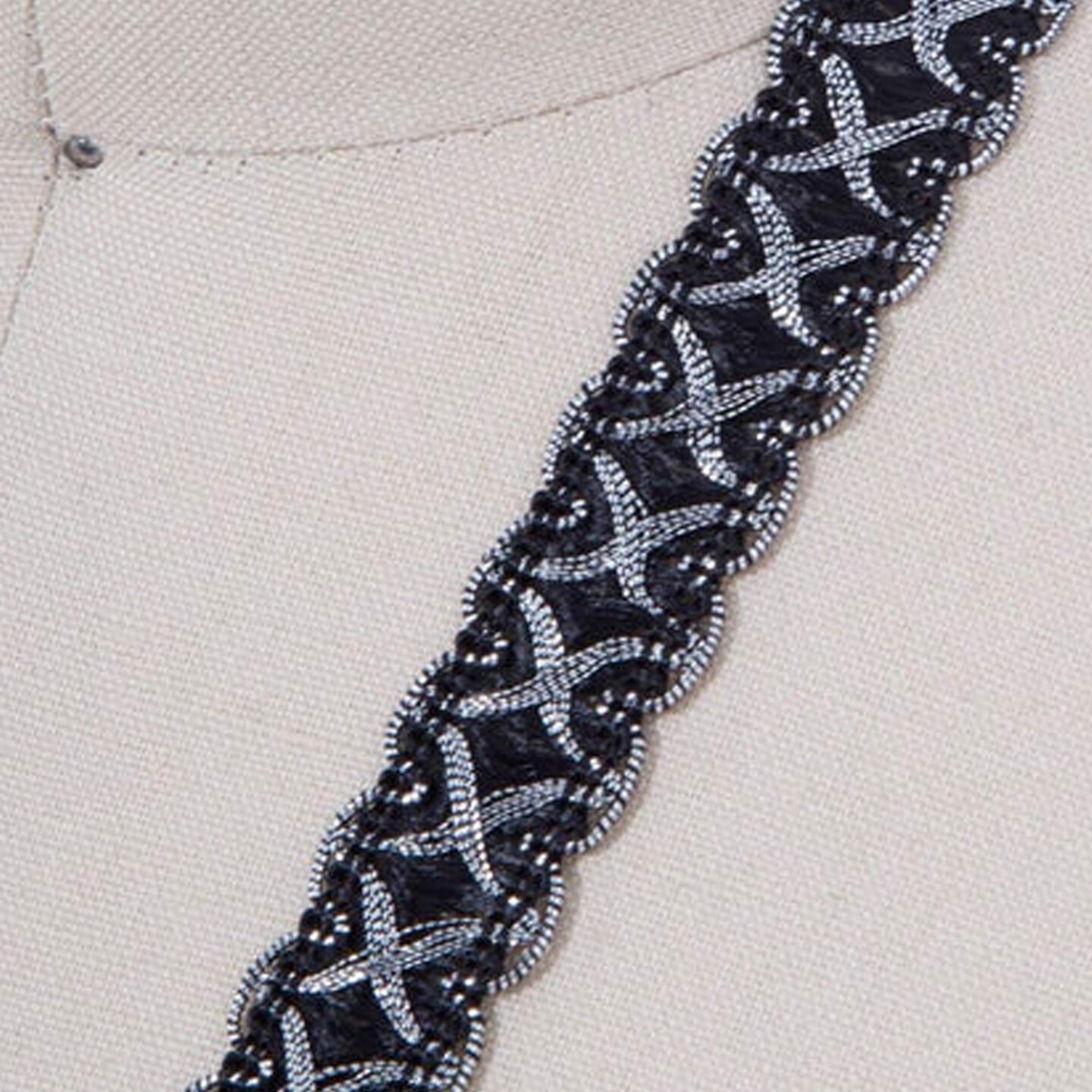 5/8" Black and Silver Crossover Gimp Trim with Picots Classic French Braid for Upholstery & Home Décor