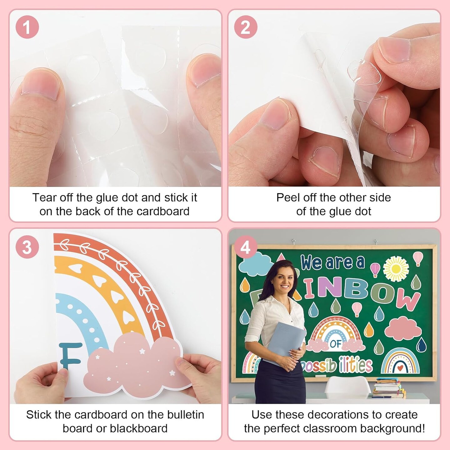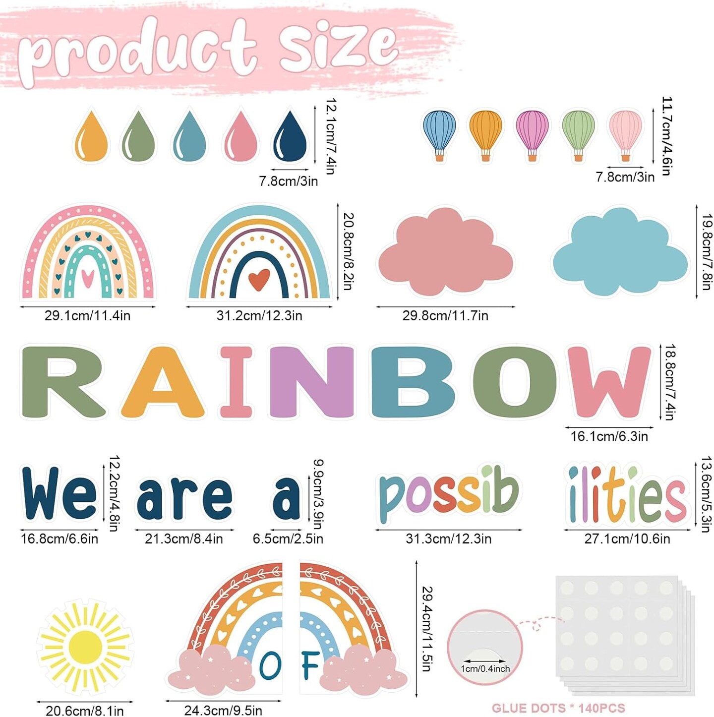 58 Pcs Rainbow Bulletin Board Set Decorations Boho Classroom Decor (Rainbow)