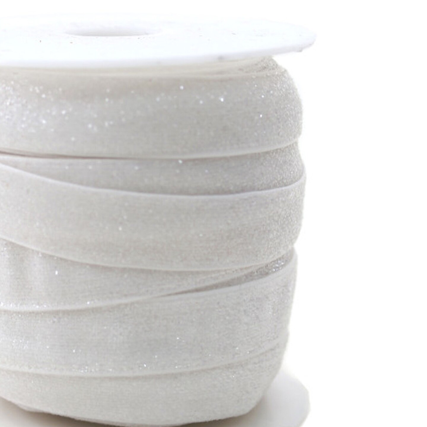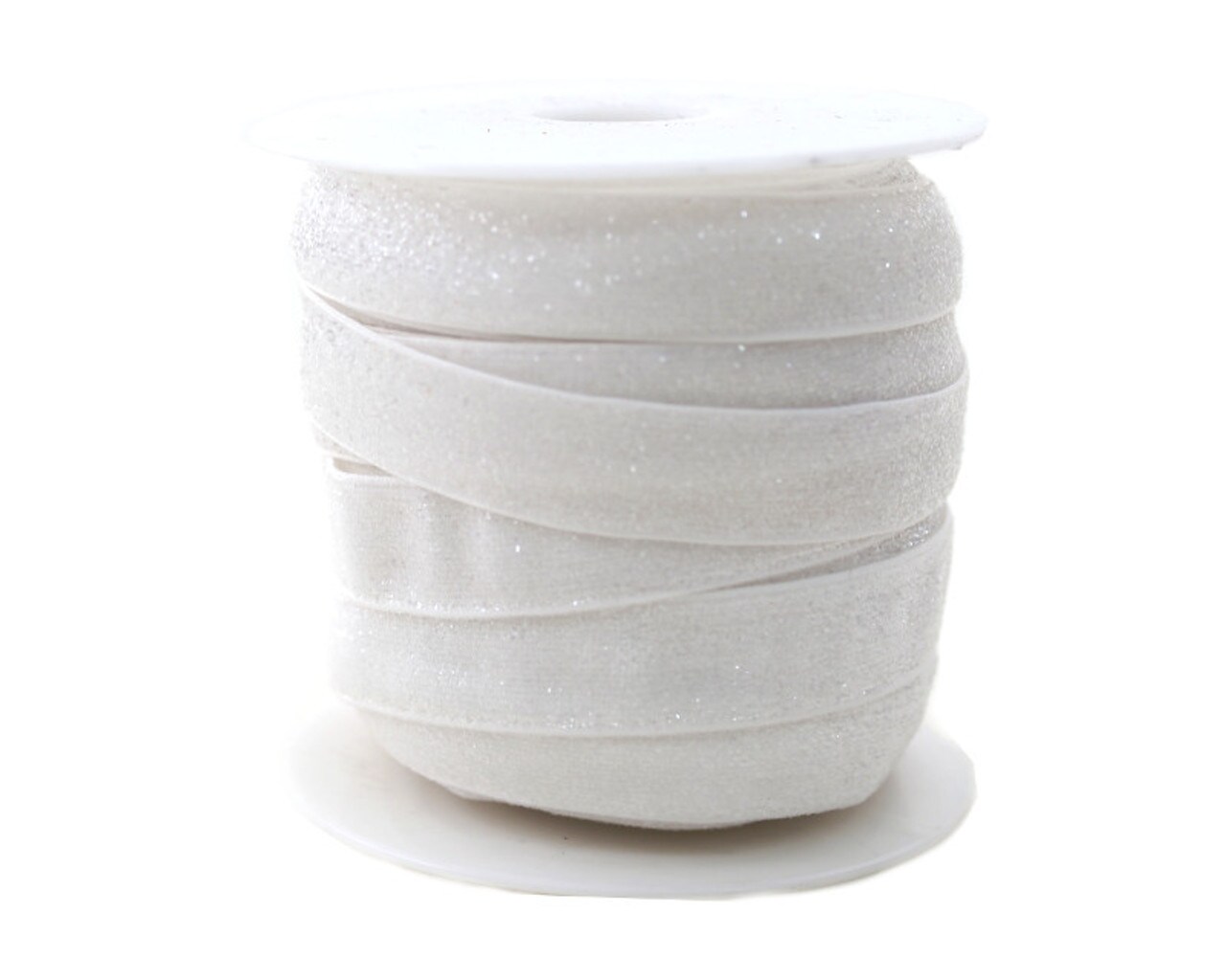 5/8" x 20 Yards Fold Over Elastic Stretch White Glitter Trim