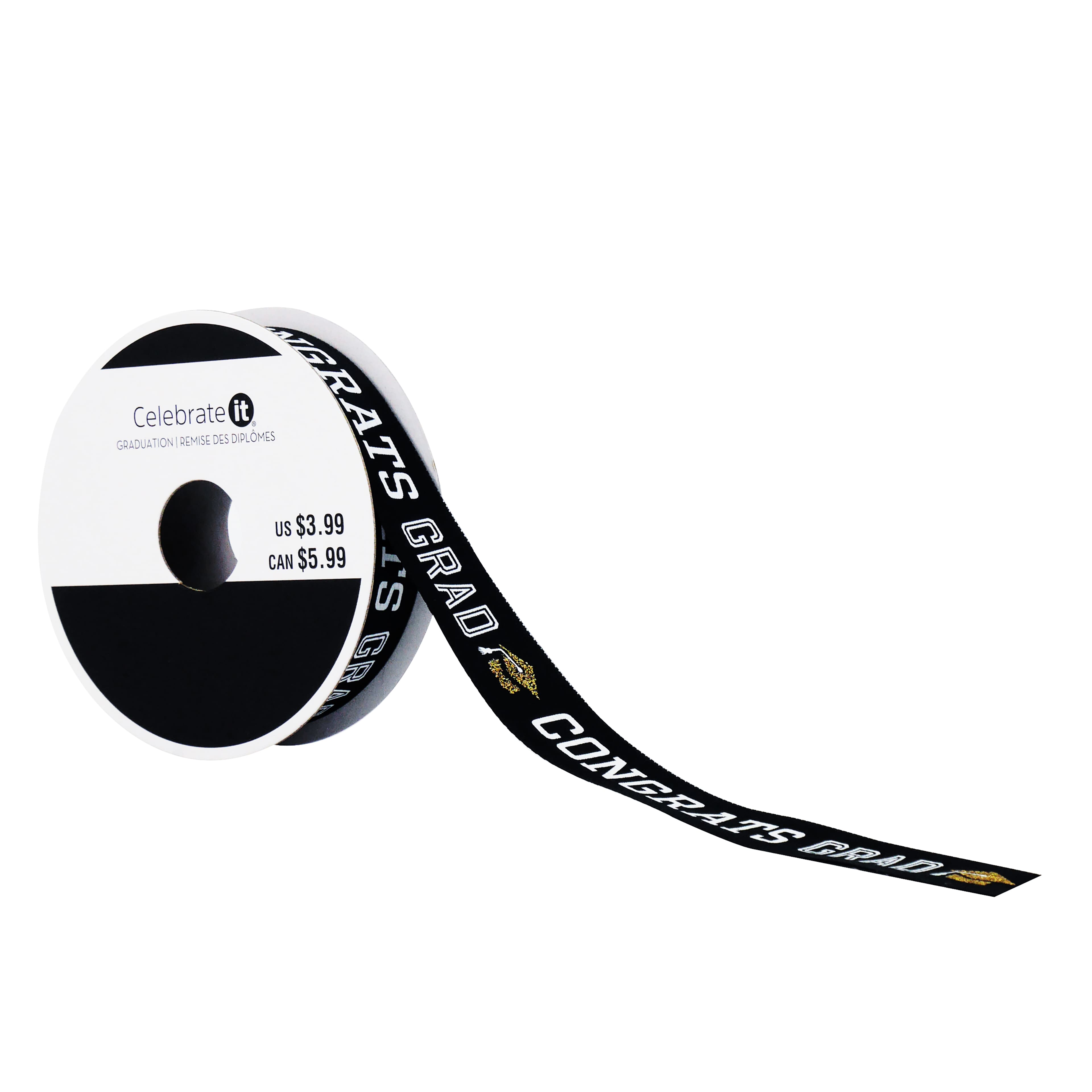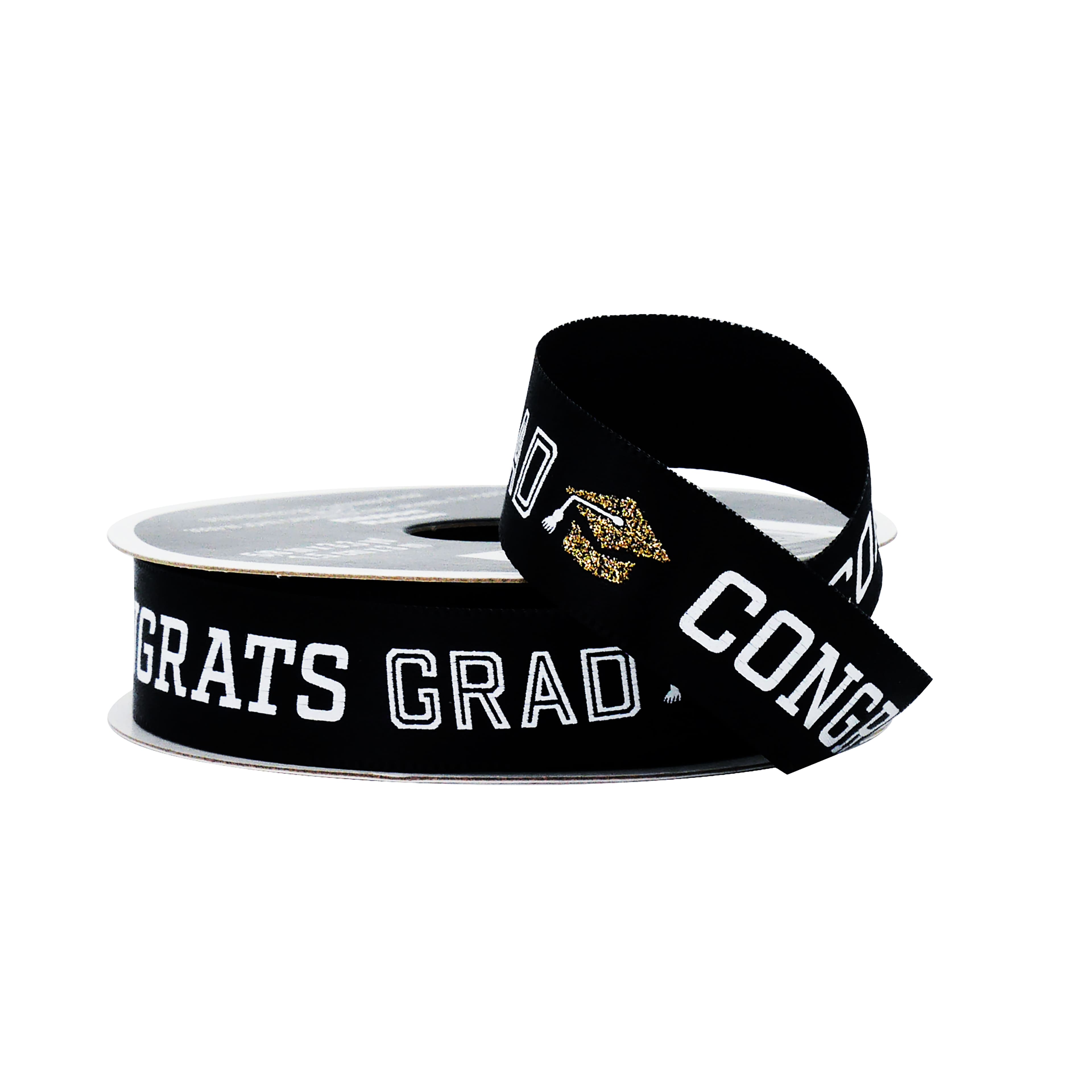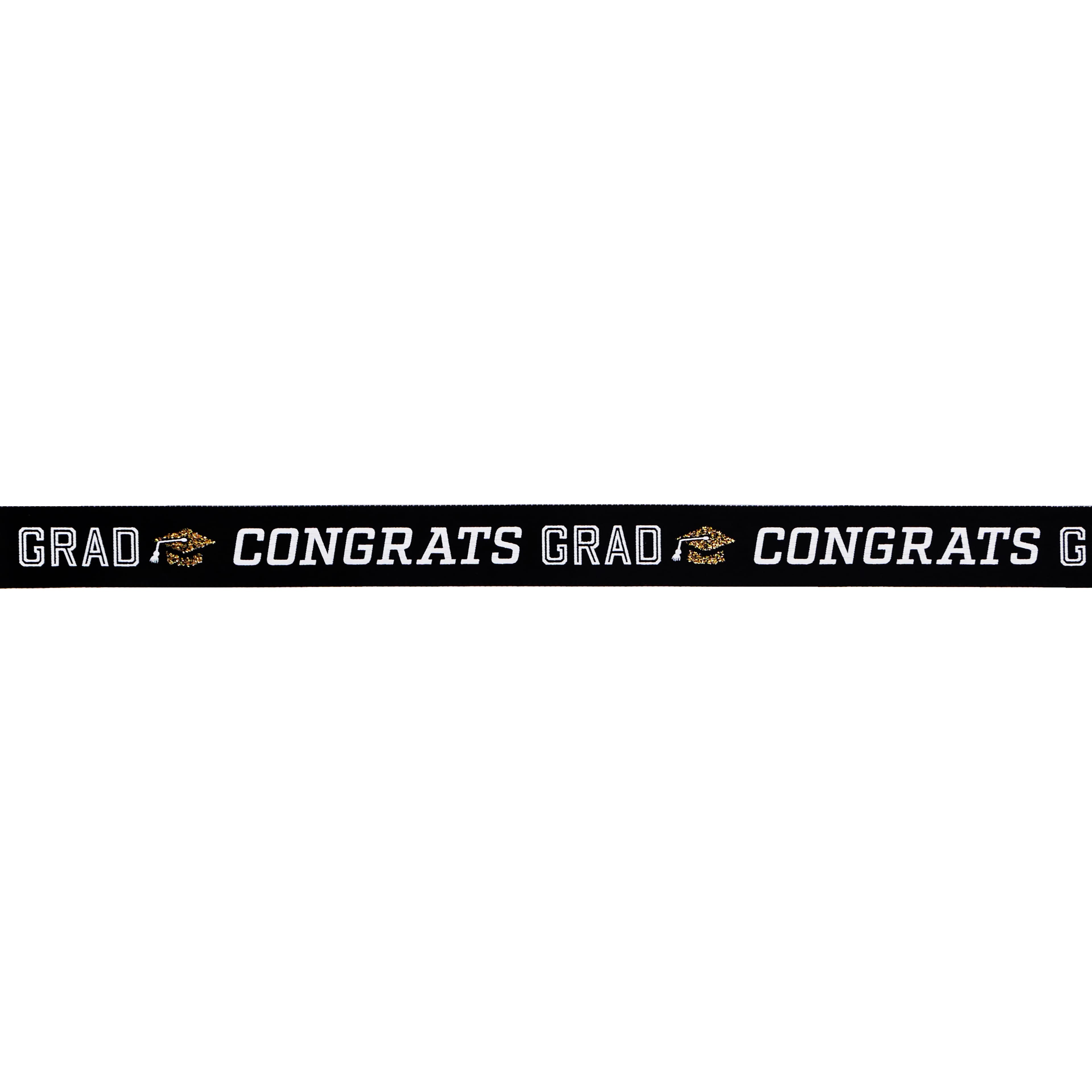 5/8" x 3.3yd. Black Congrats Grad Satin Ribbon by Celebrate It®