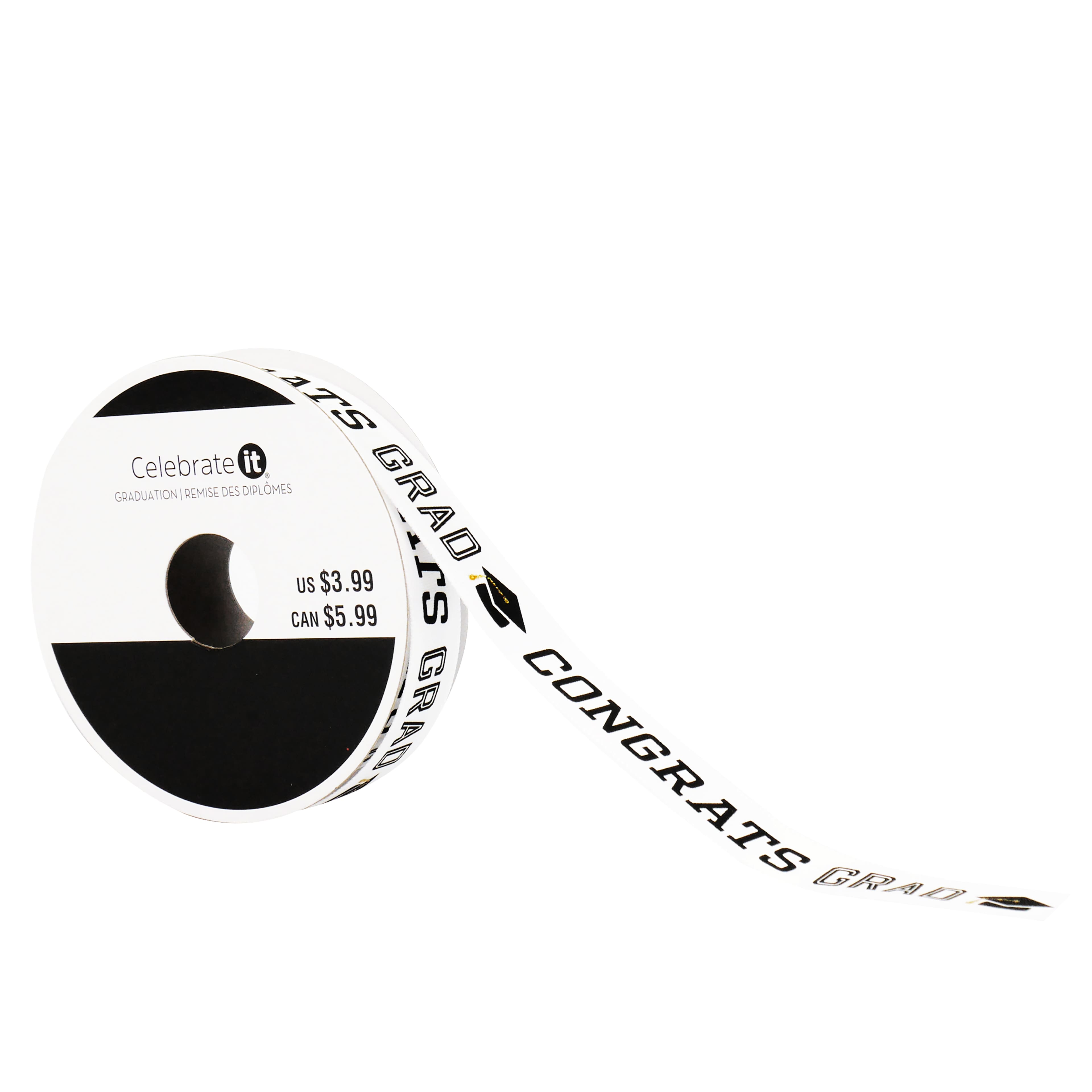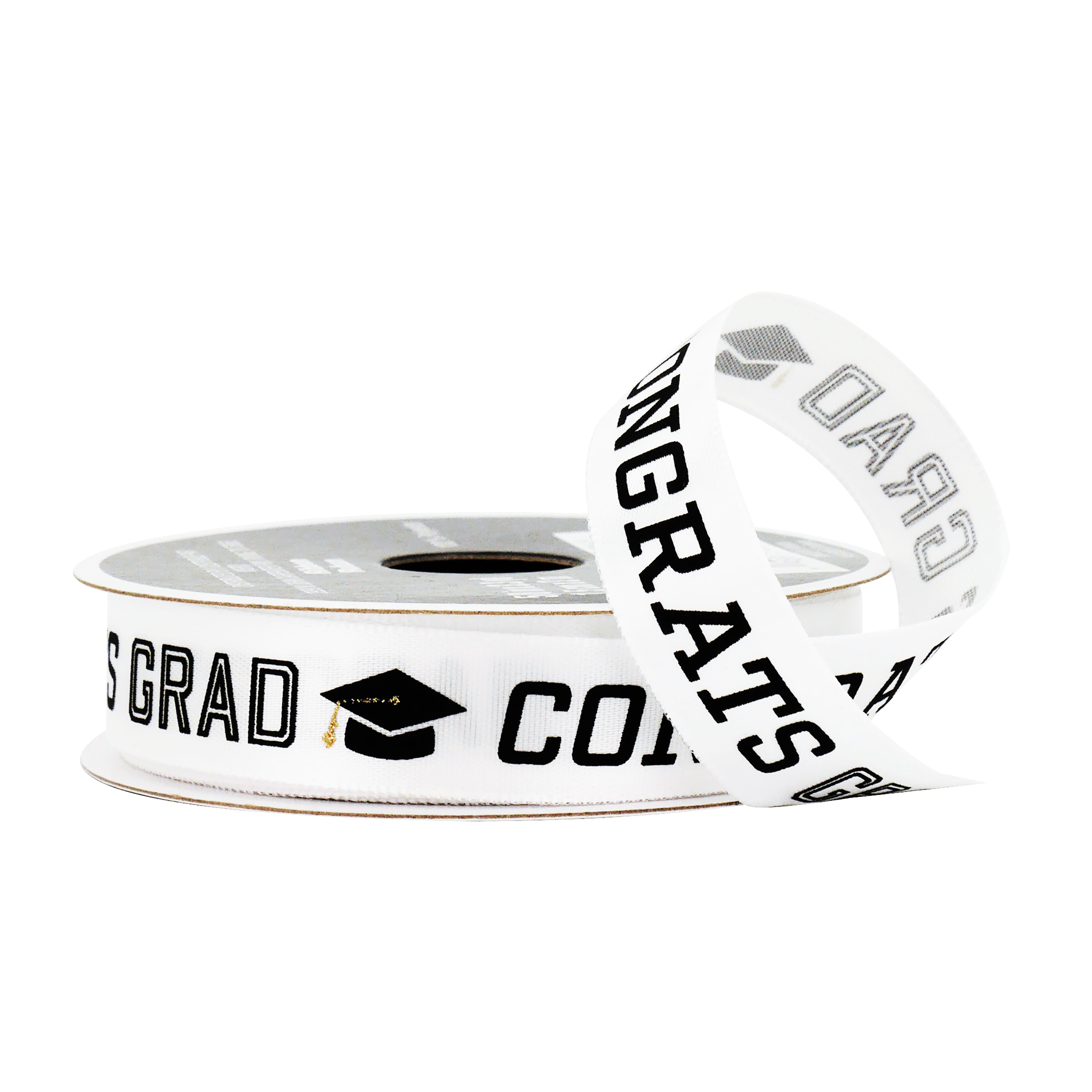 5/8" x 3.3yd. White Congrats Grad Satin Ribbon by Celebrate It®