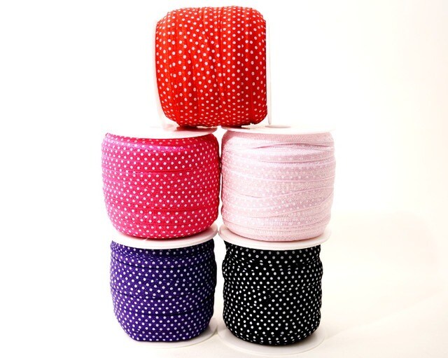 5/8 x 50 Yards Apple Green Polka Dot Fold Over Elastic Sewing Trim