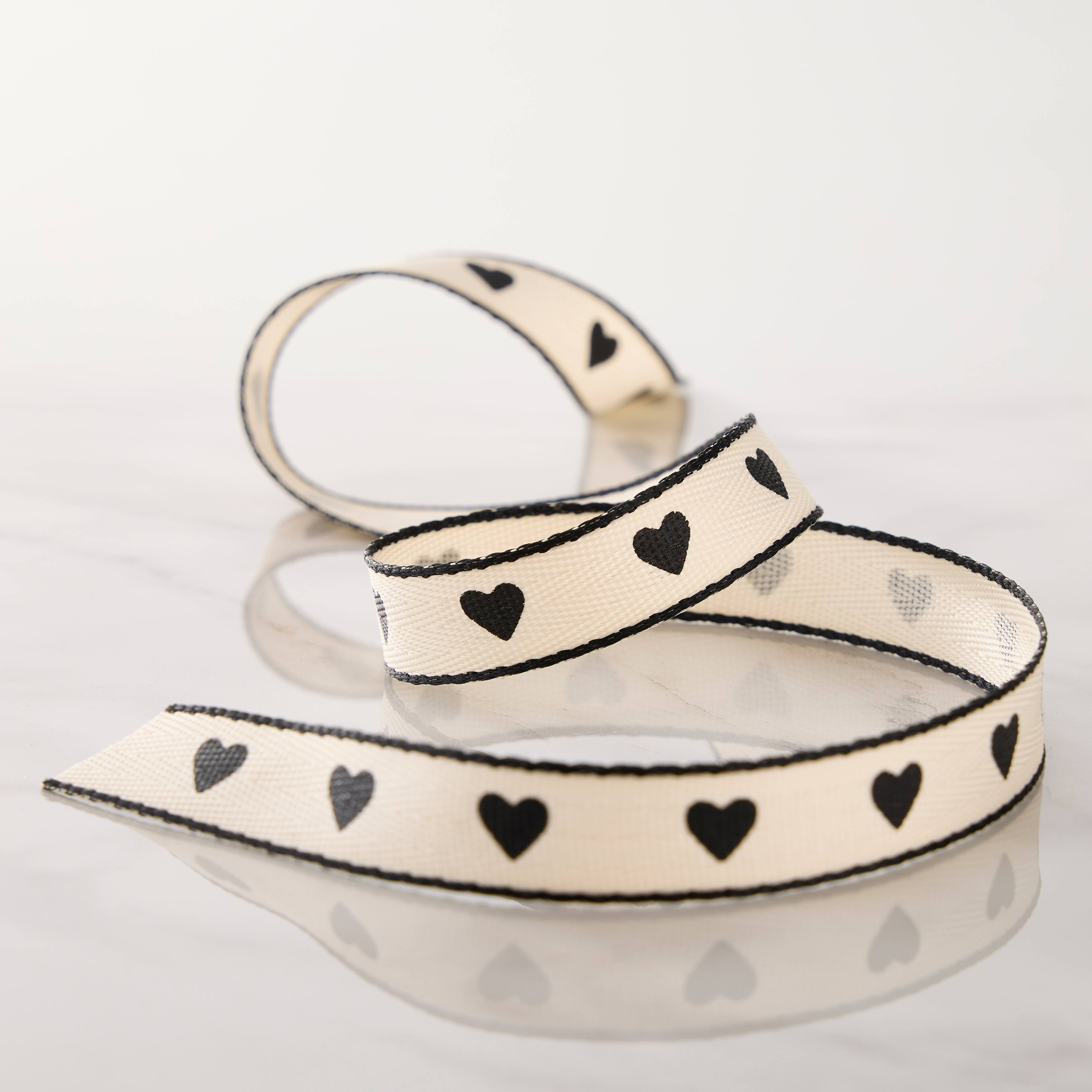 5/8" x 7yd. Black Hearts Faux Linen Ribbon by Celebrate It® Classic