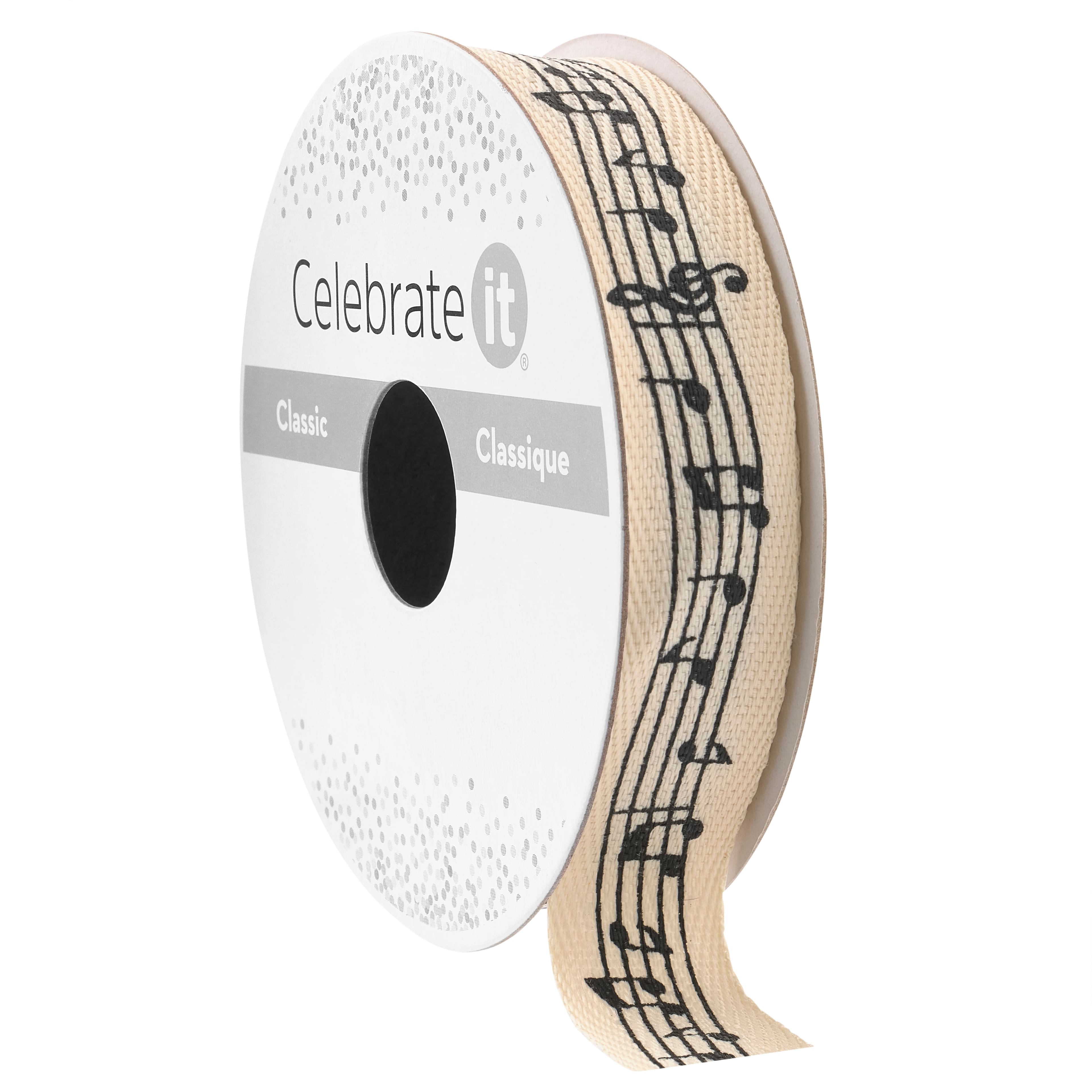 5/8" x 7yd. Black Music Staff Faux Linen Ribbon by Celebrate It® Classic