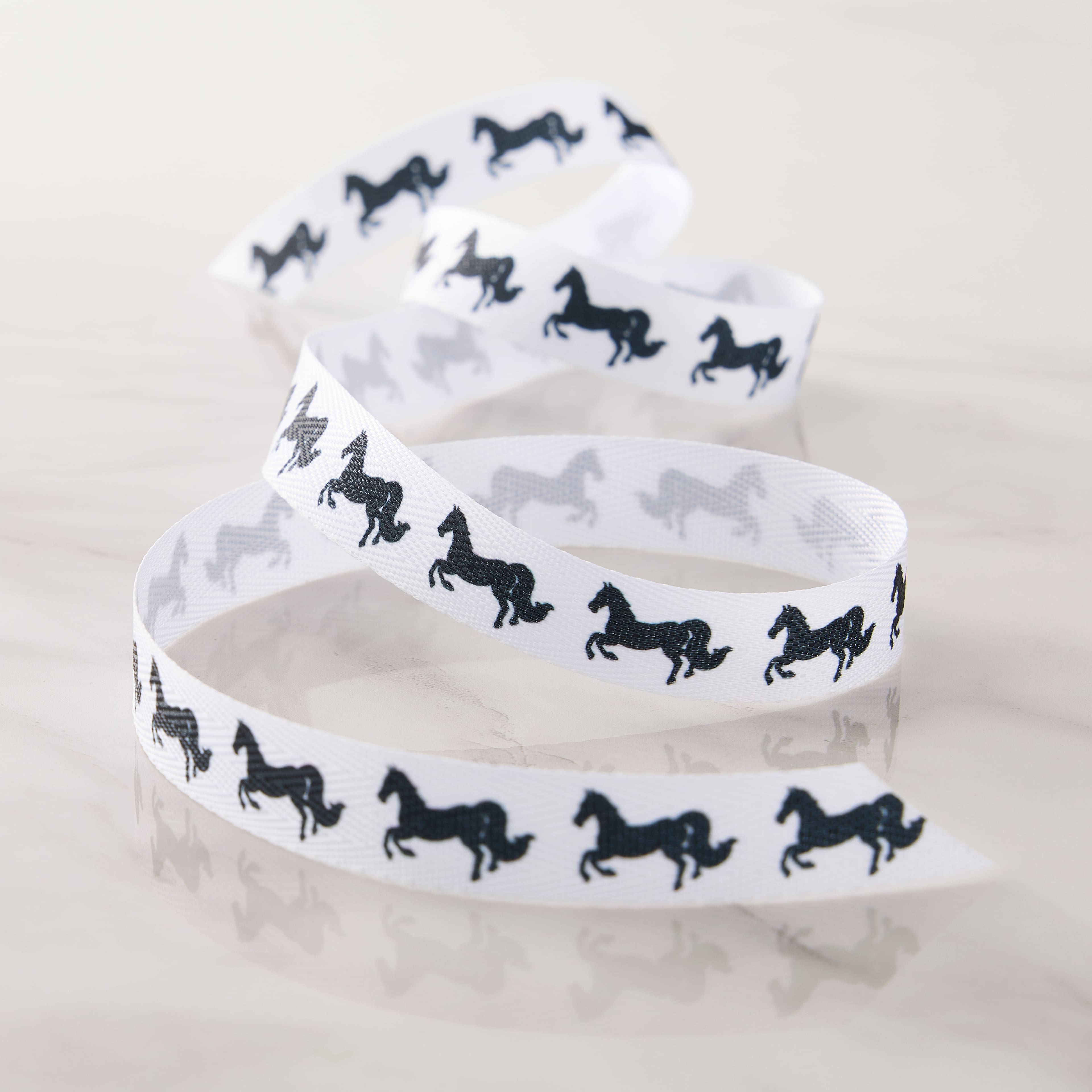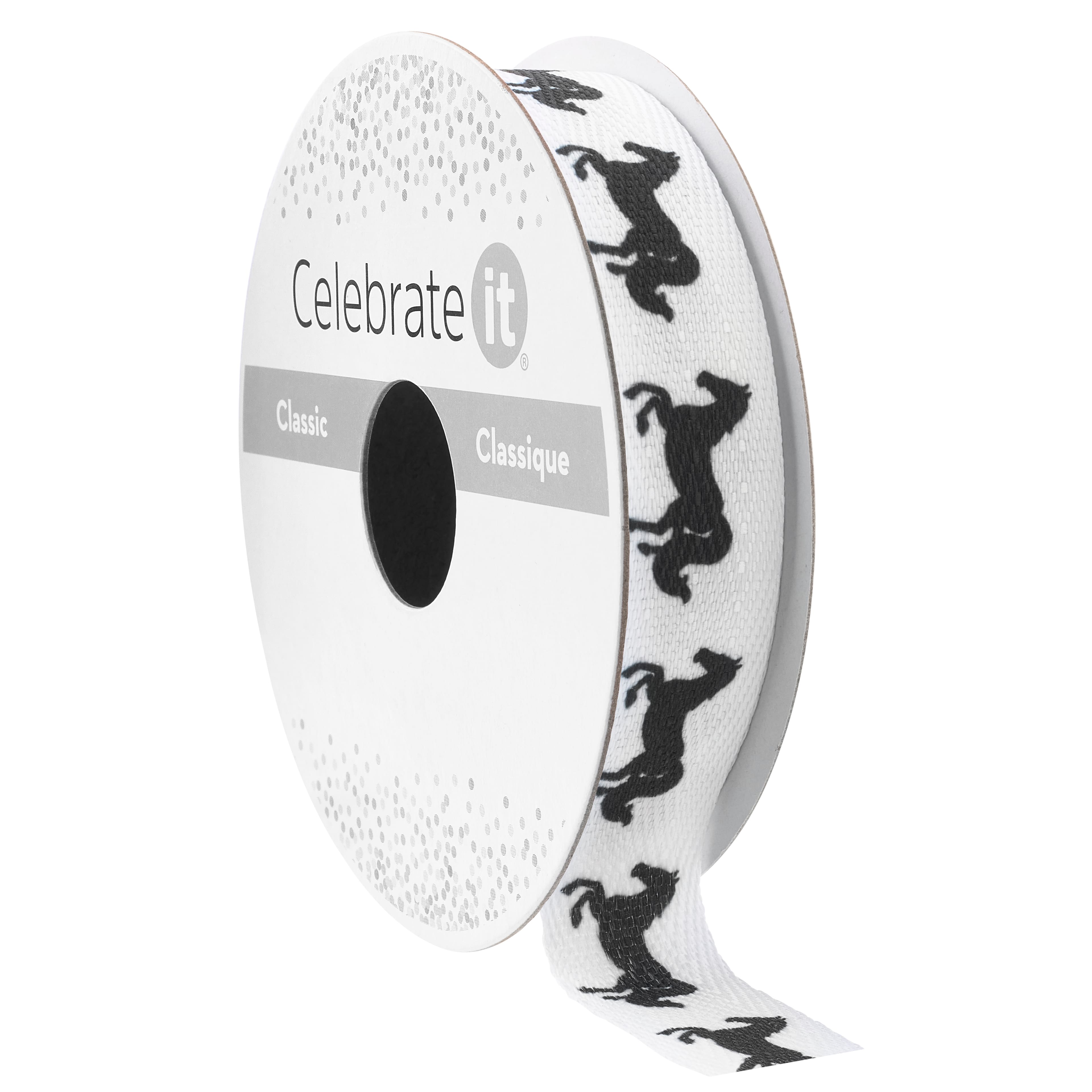 5/8" x 7yd. Black & White Horses Faux Linen Ribbon by Celebrate It® Classic