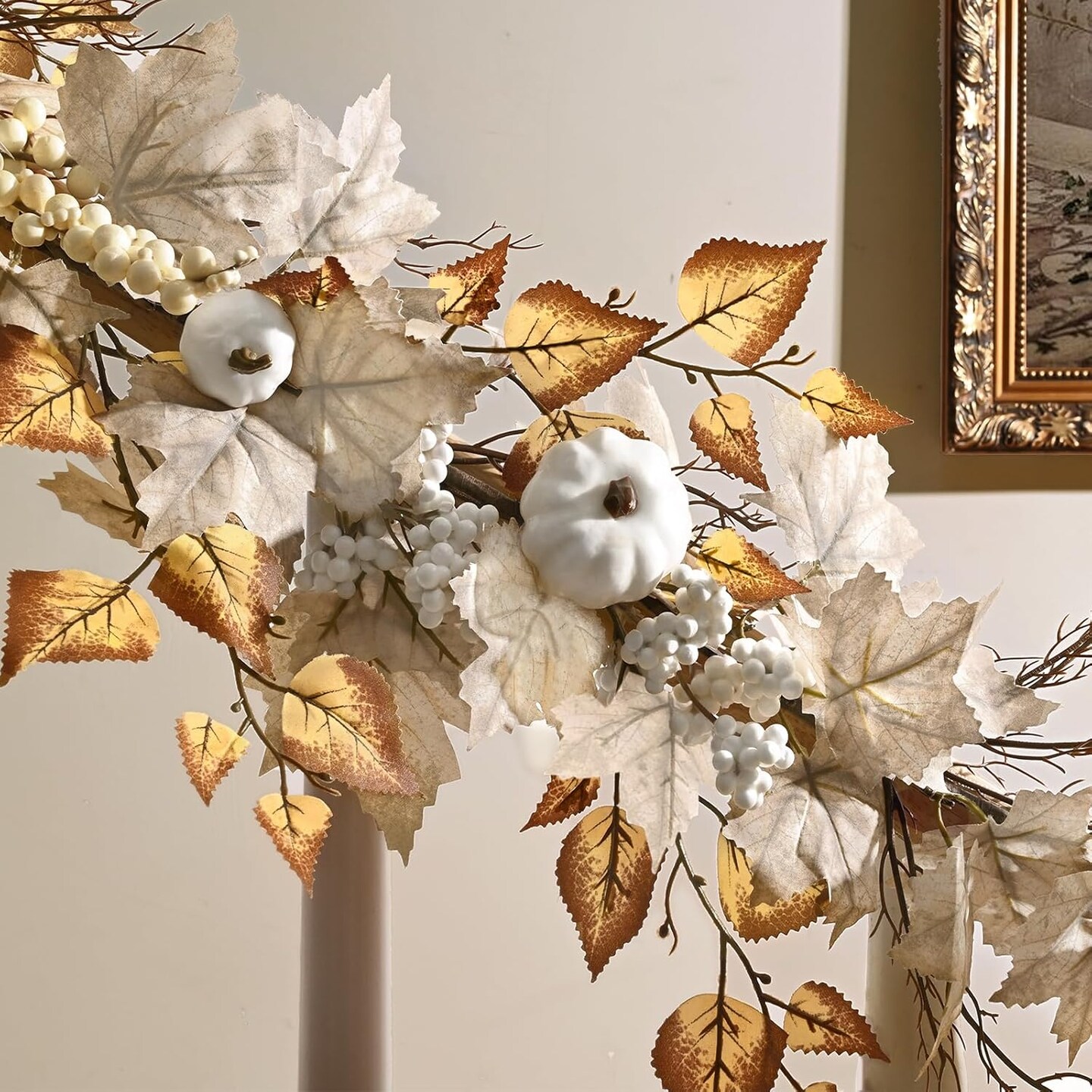 5.8ft Fall Garland with Lights Mantle Fireplace Autumn Garland