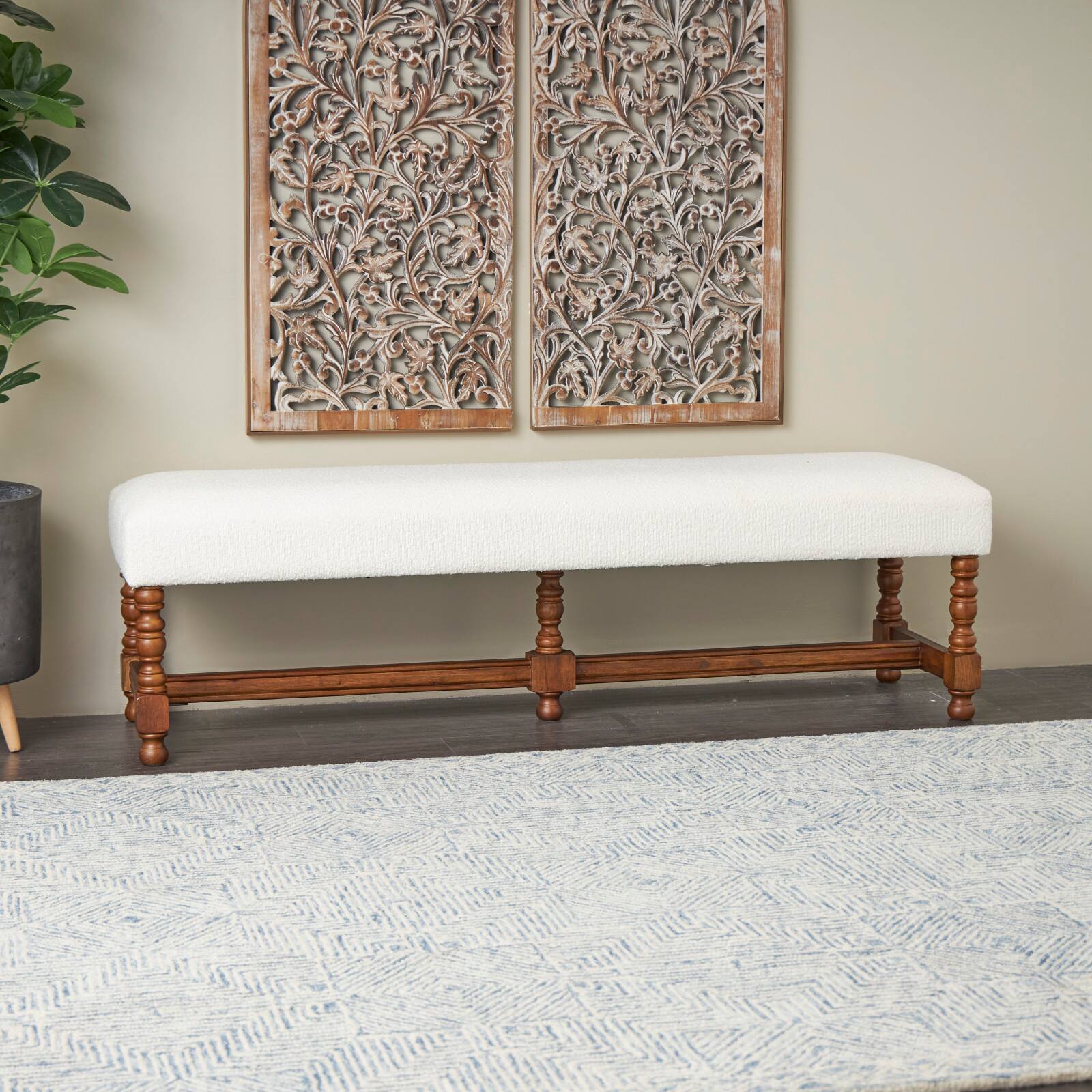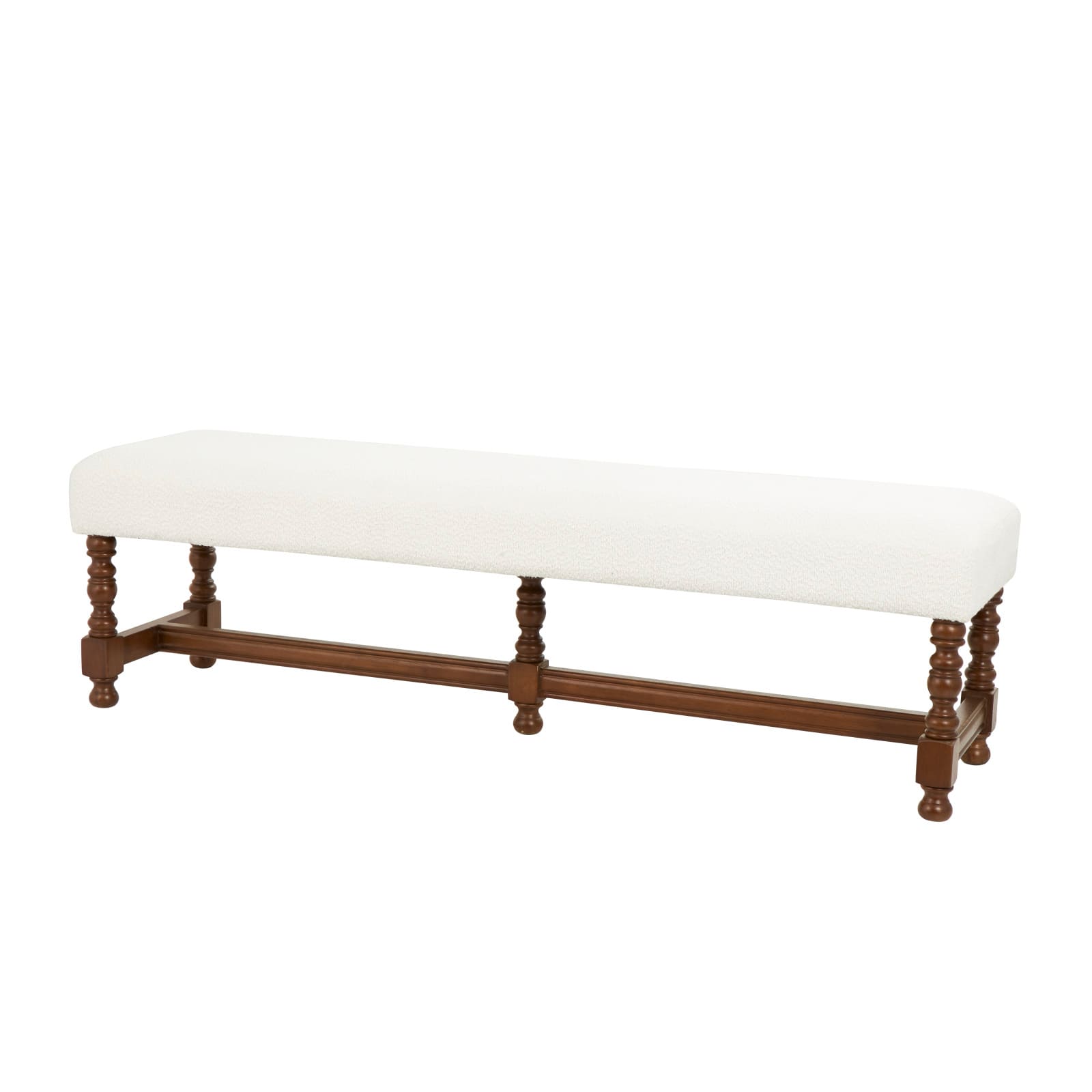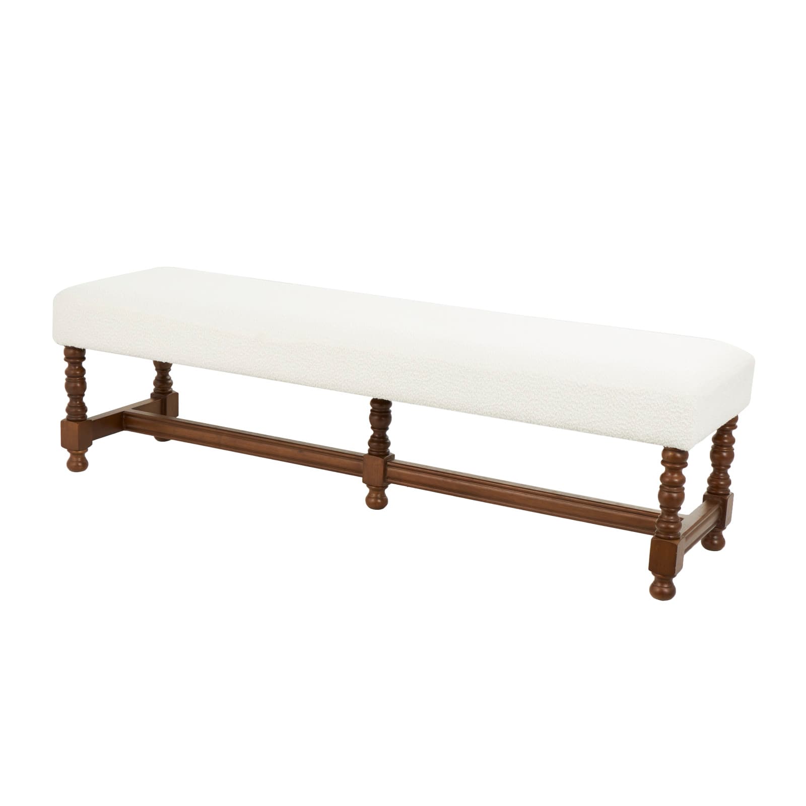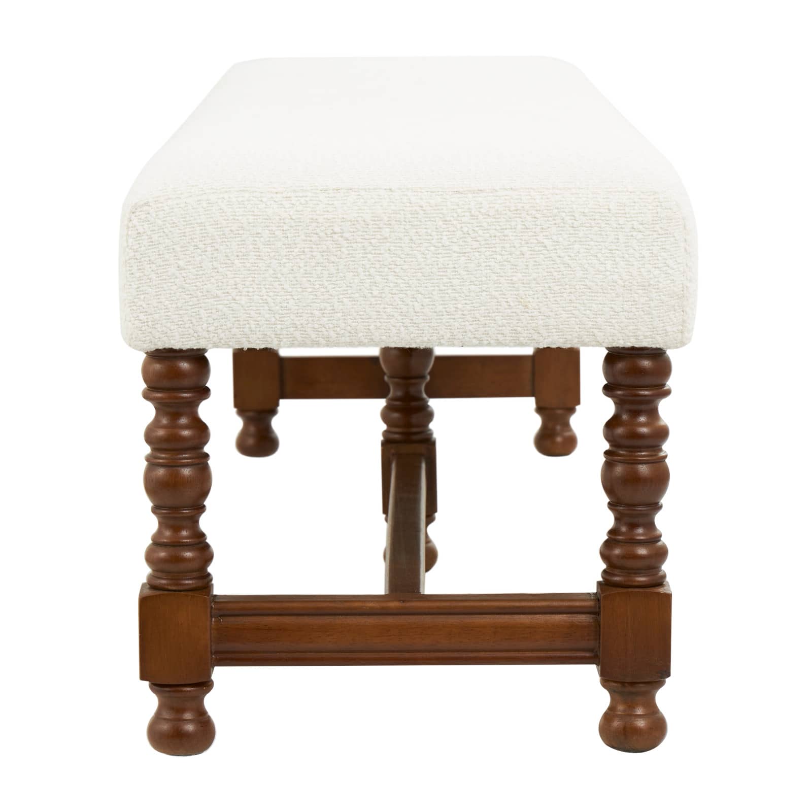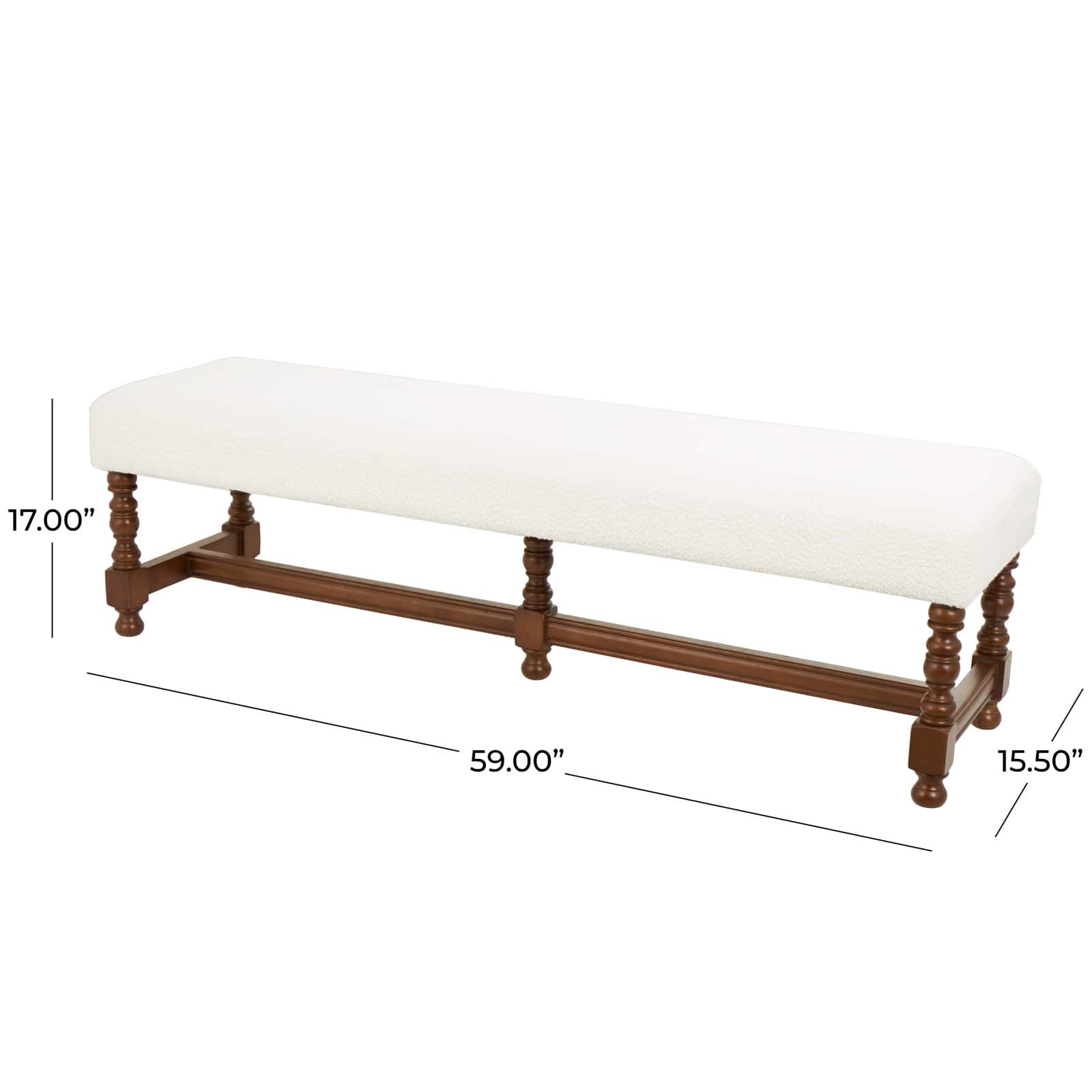 59" Cream Fabric Bench with Brown Traditional Wood Turned Legs