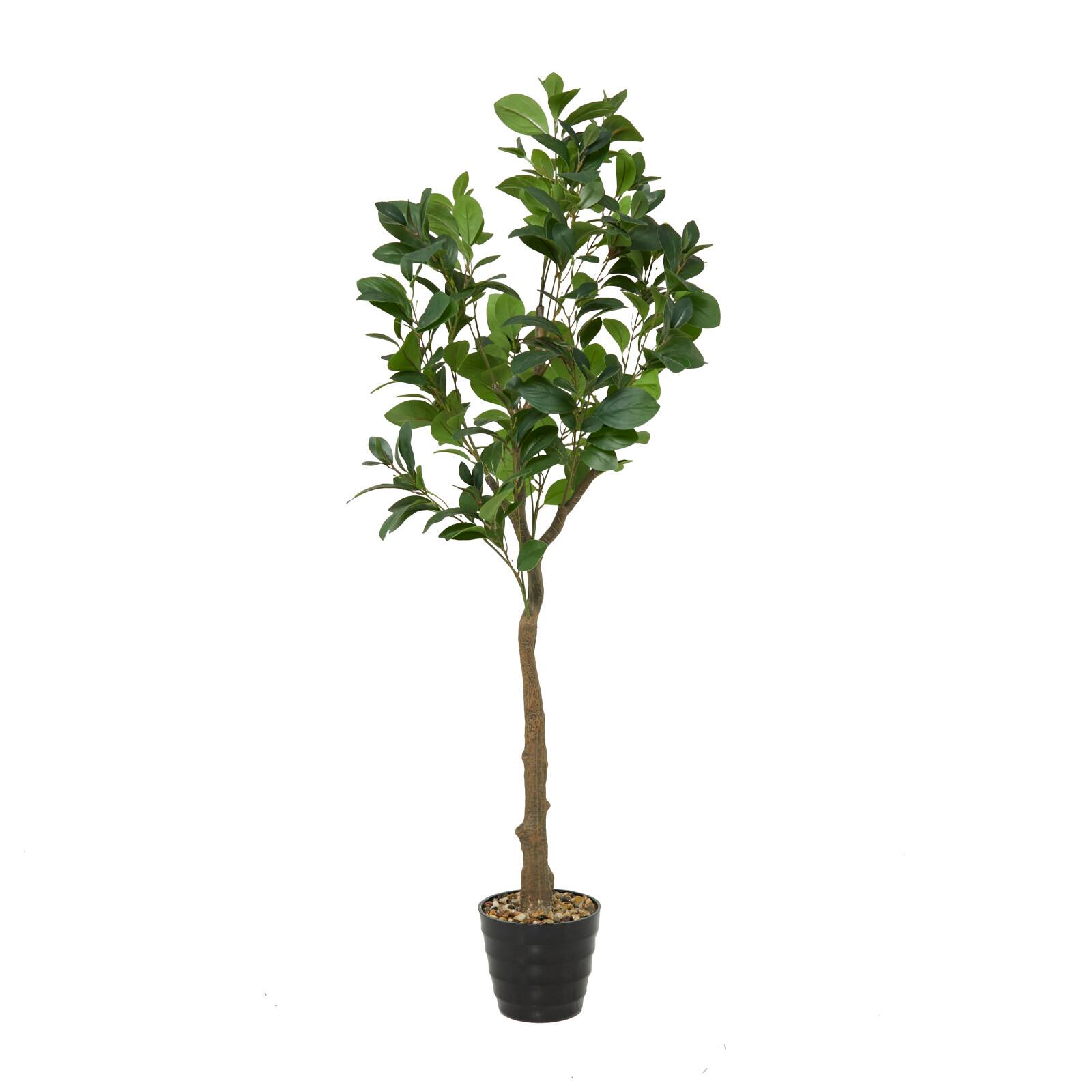 59" Green Faux Foliage Indoor Outdoor Fig Artificial Tree with Black Melamine Pot