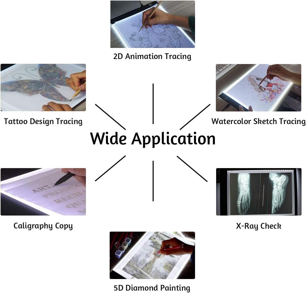59 Pcs Diamond Painting A4 LED Light Pad Kit, 5D Diamond Painting Accessories Tool Kit Full Drill for Adults and Kids, Supplies Includes Storage Case, Pens,Stand,Pad Board