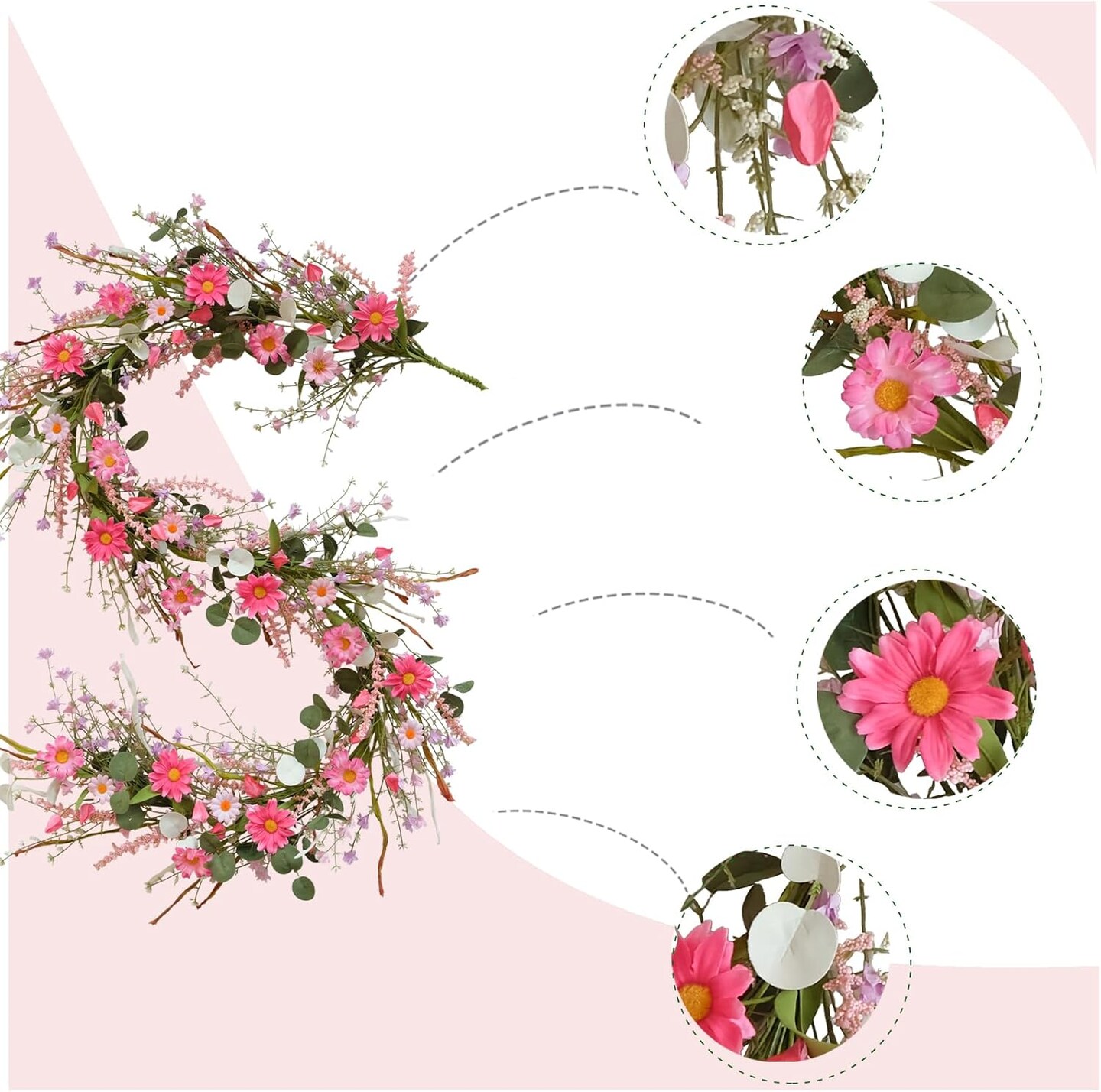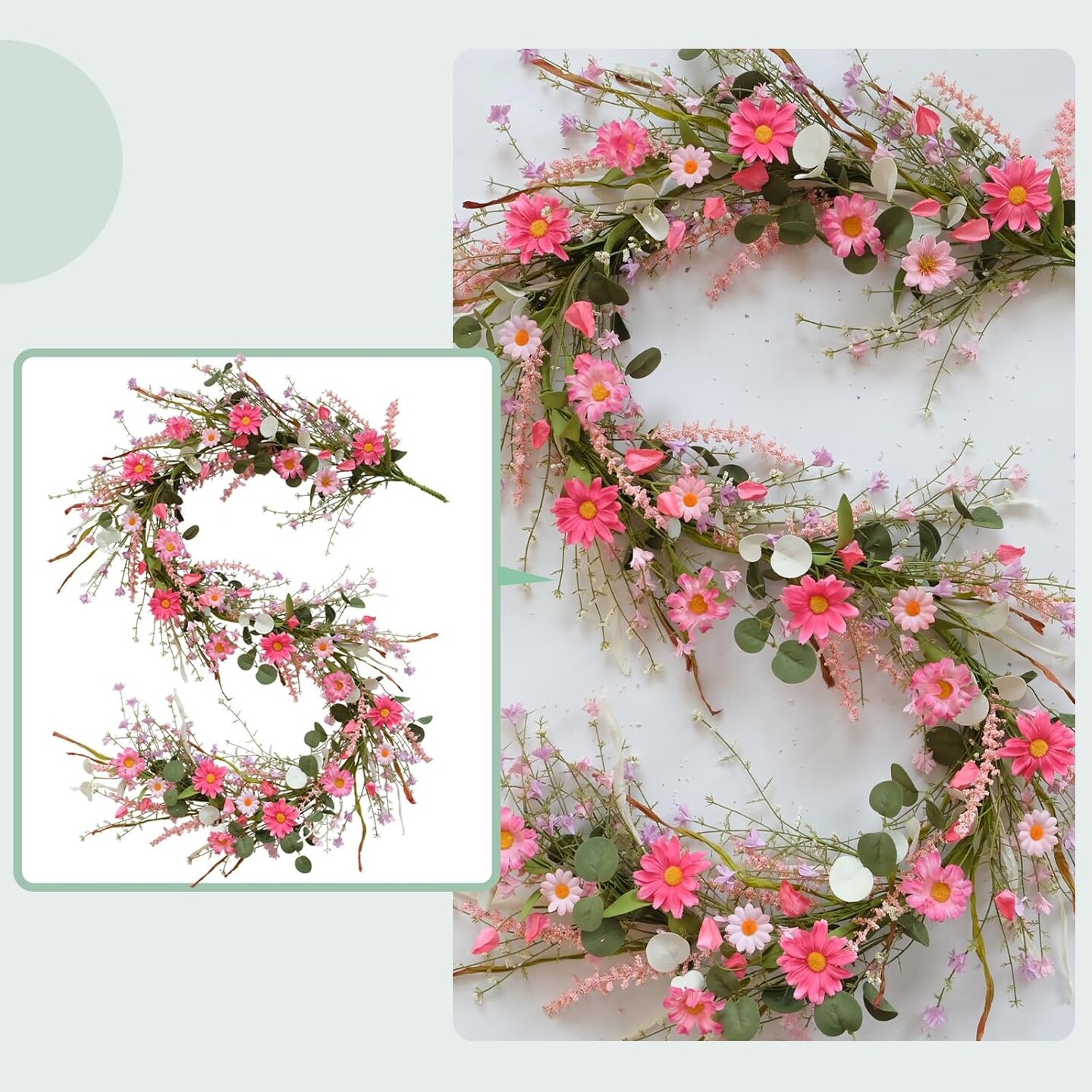 5.9ft Spring/Summer Flower Garland, Artificial Daisies Wildflower Leaves Garland