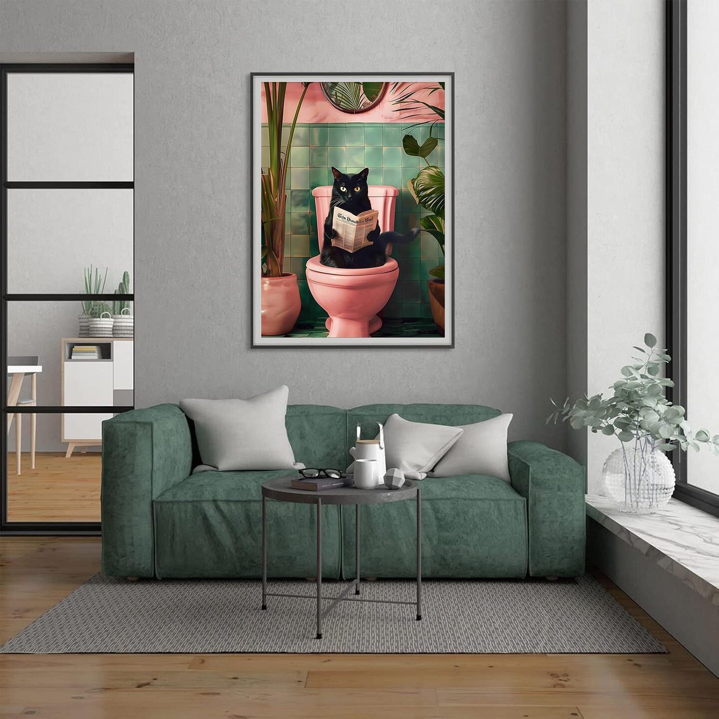 5D Black Cat Diamond Painting Kit for Adults – DIY Full Drill Round Diamond Art, Sparkling Crystal Gem Craft for Home Wall Decor, 12×16 inch