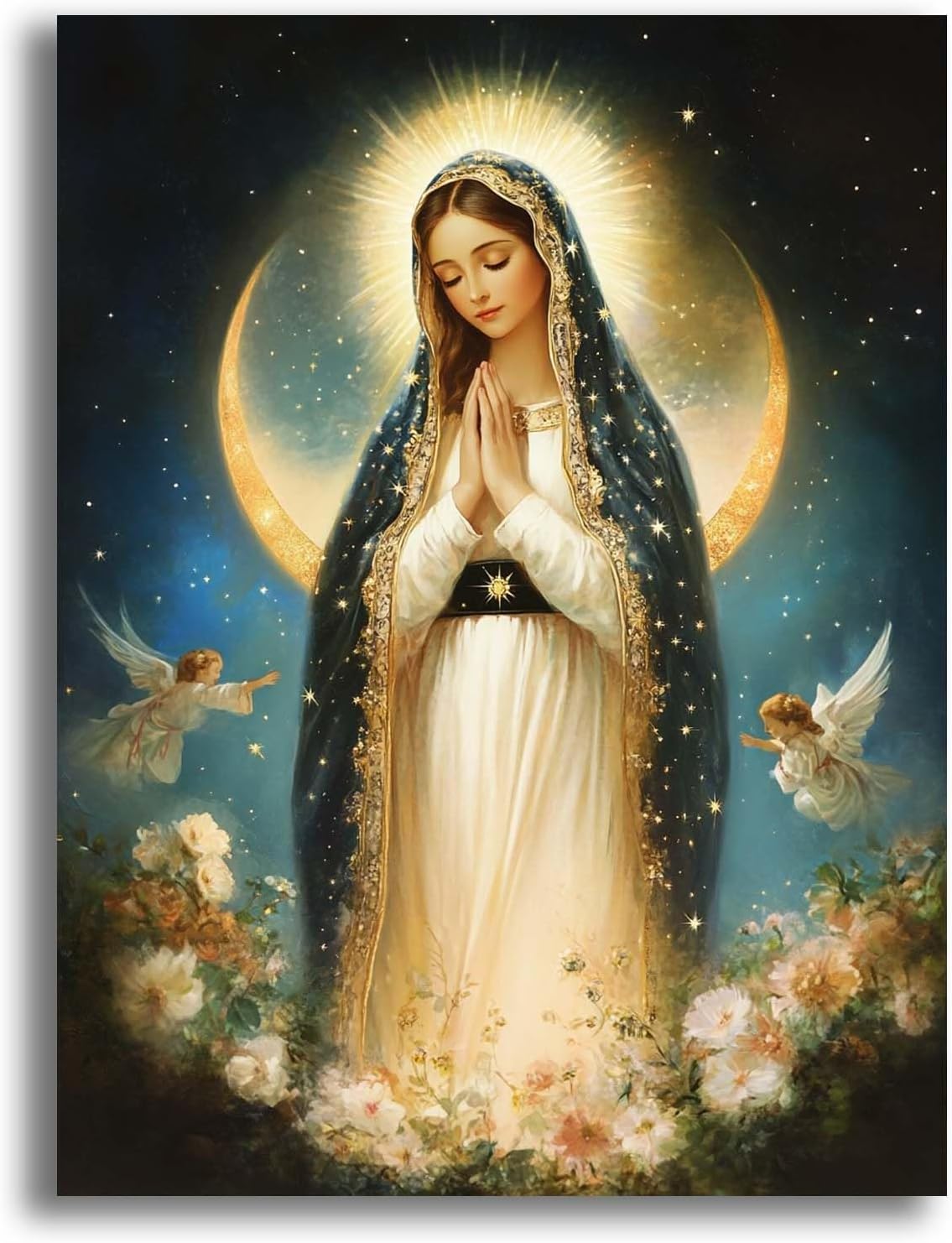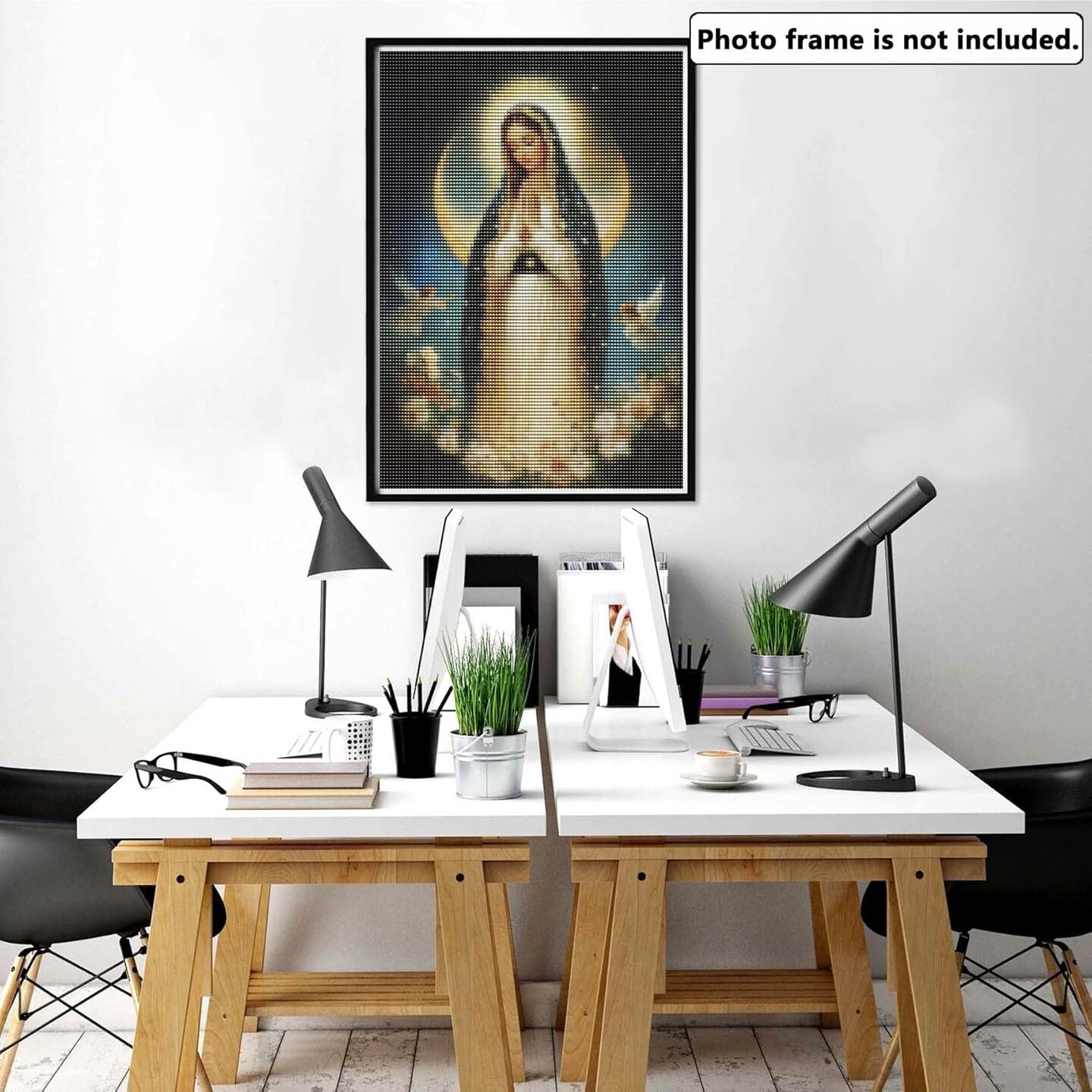5D Blessed Virgin Mary Diamond Painting Kit – DIY Full Round Drill Rhinestone Art, Spiritual God Embroidery Canvas, 30x40 cm Home Wall Decor