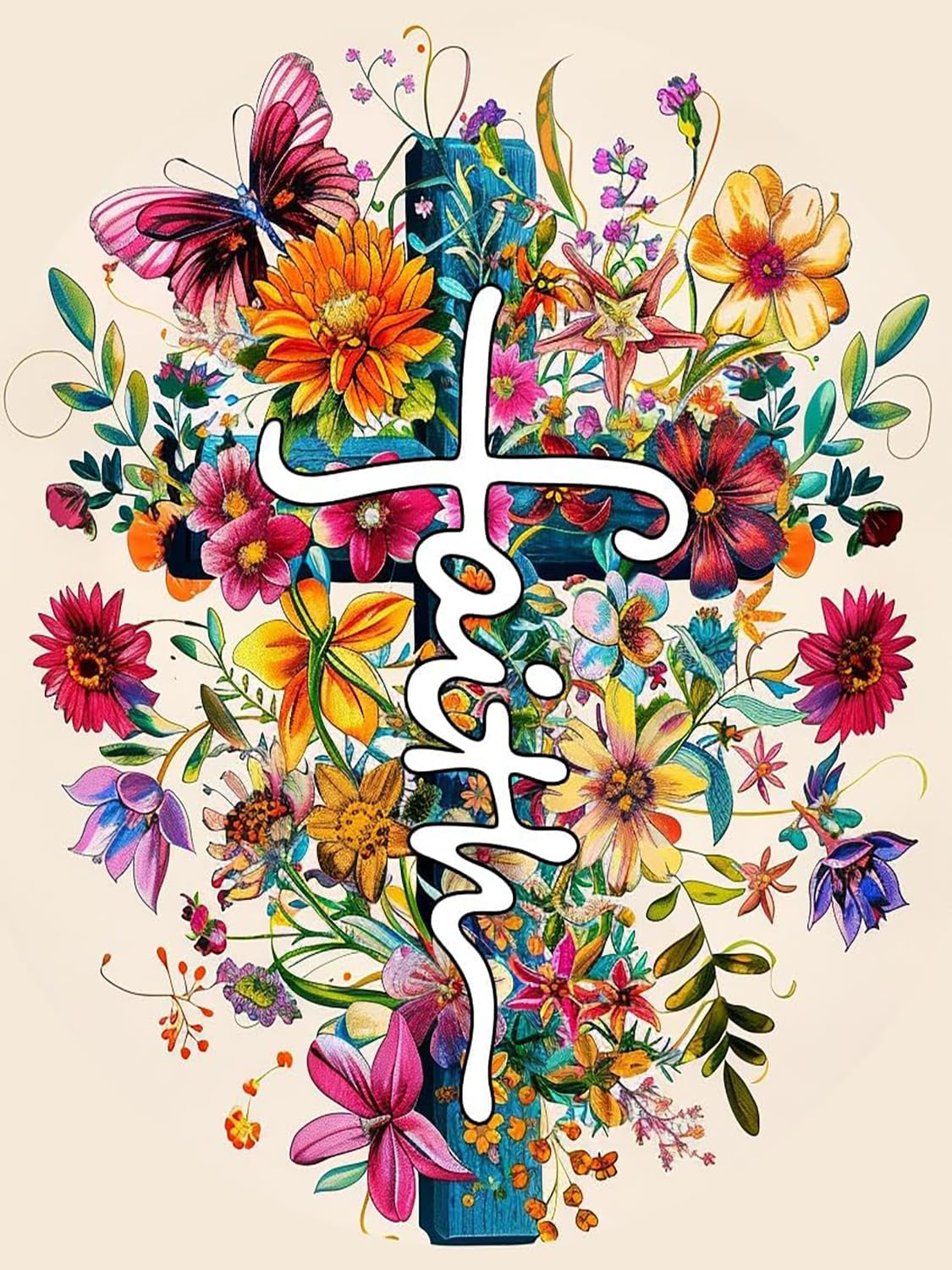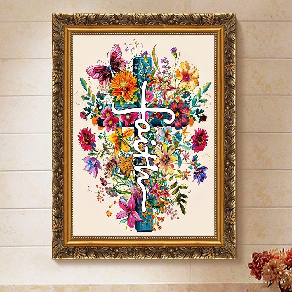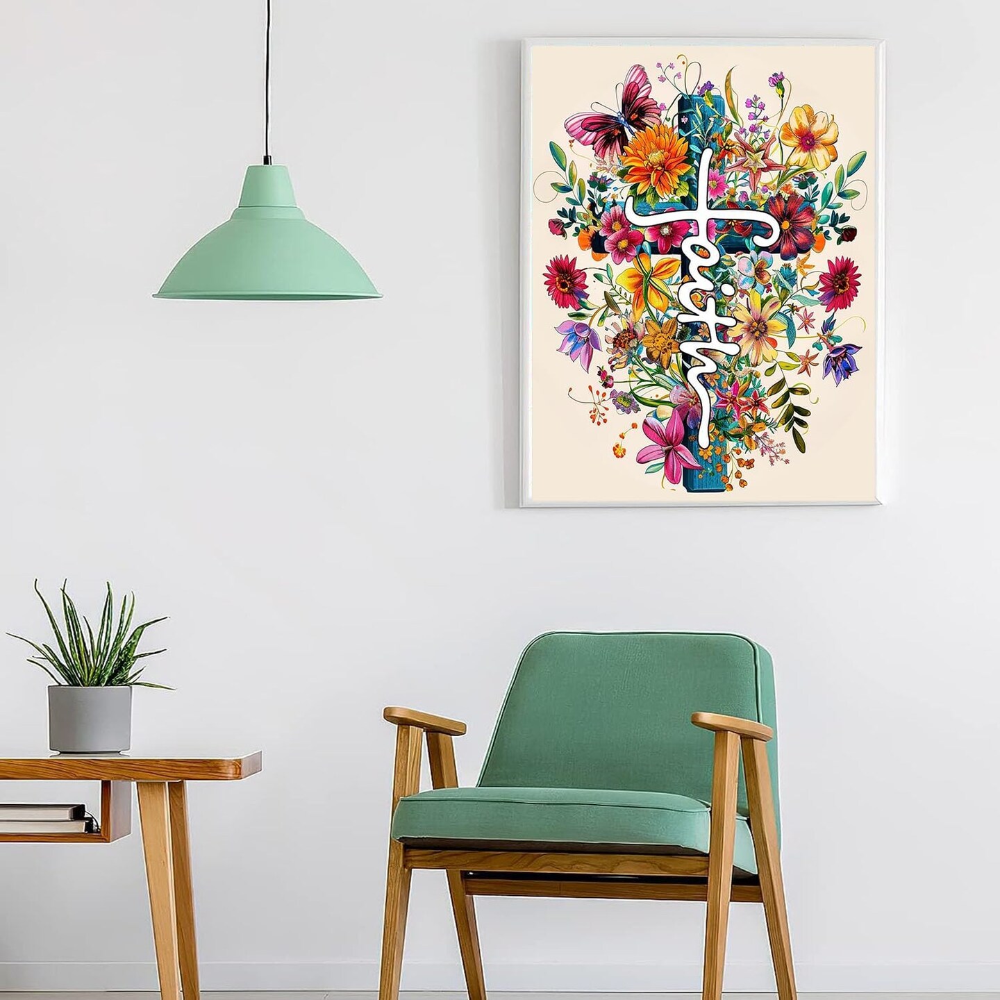 5D Cross Flowers Diamond Painting Kit for Adults, 12×16 in, Round Full Drill – DIY Home Decor