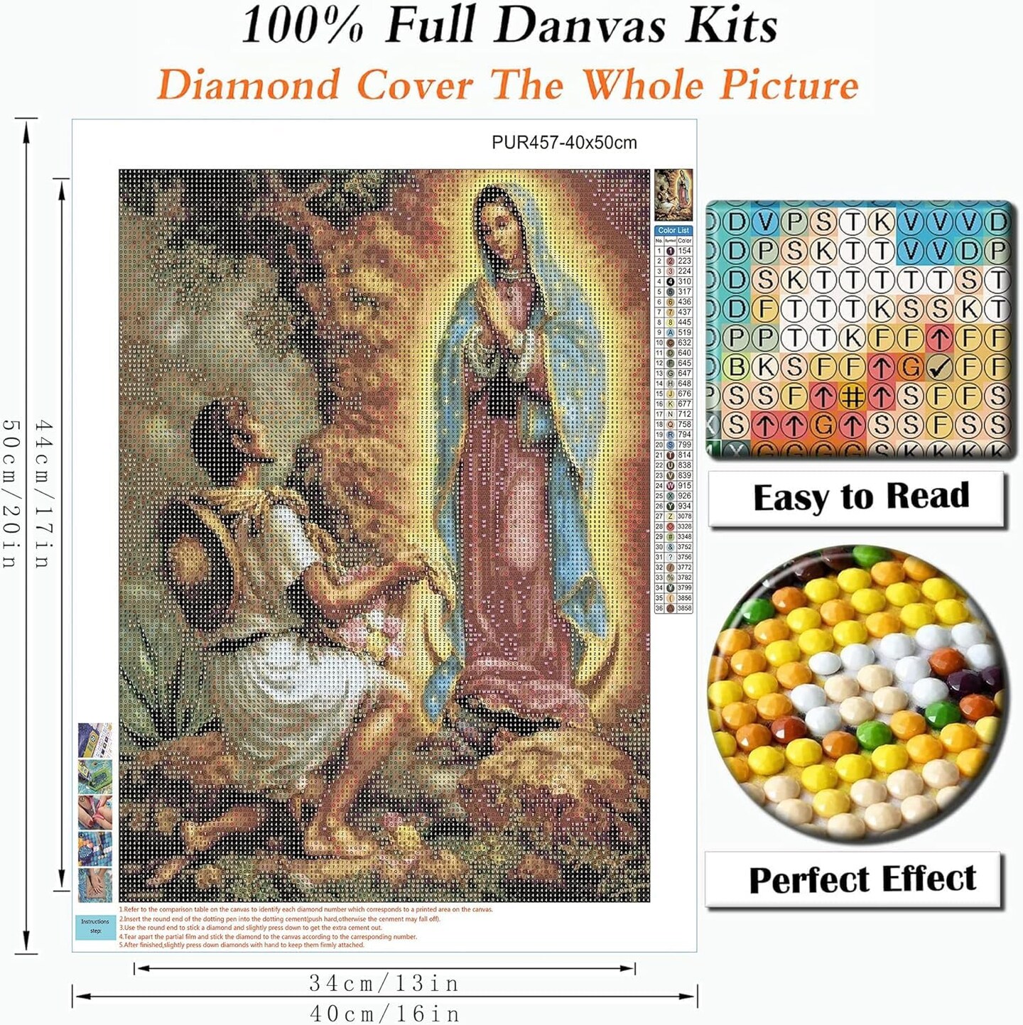 5D Diamond Art Painting by Number Kits Full Drill for Religious Lady of Guadalupe Virgin Mary 16x20 Inch Round Drill Diamond Art Dots for Adults Crafts Cross Stitch Wall Decor
