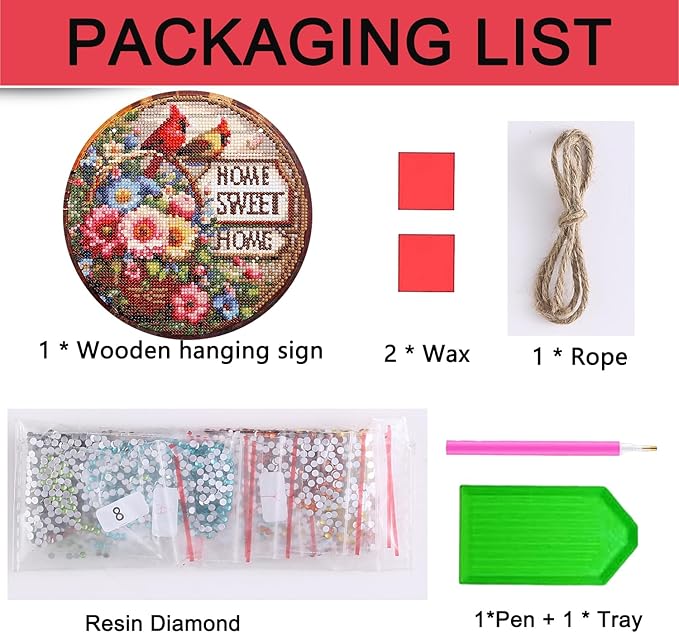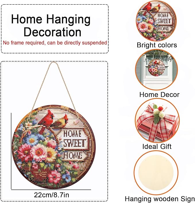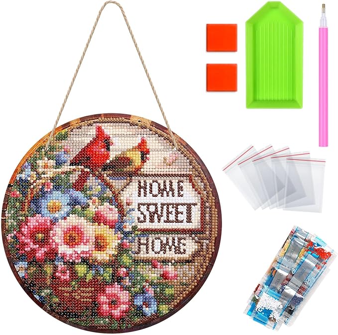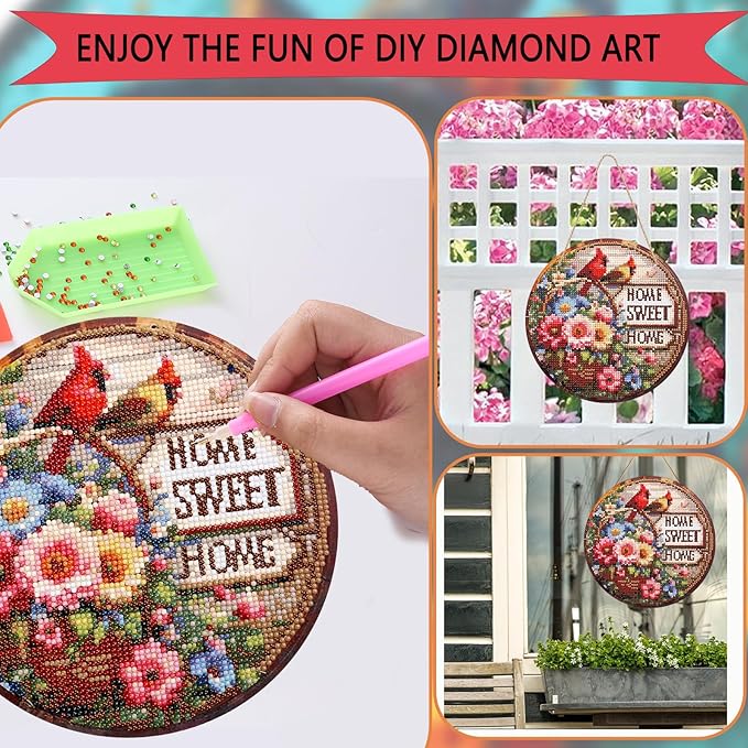 5D Diamond Art Painting Kits for Adult Beginners with Tools, DIY Sign Gem Bead Art Wooden Plaque Full Drill Paint by Number Pendant for Home Garden Decor, Spring Bird