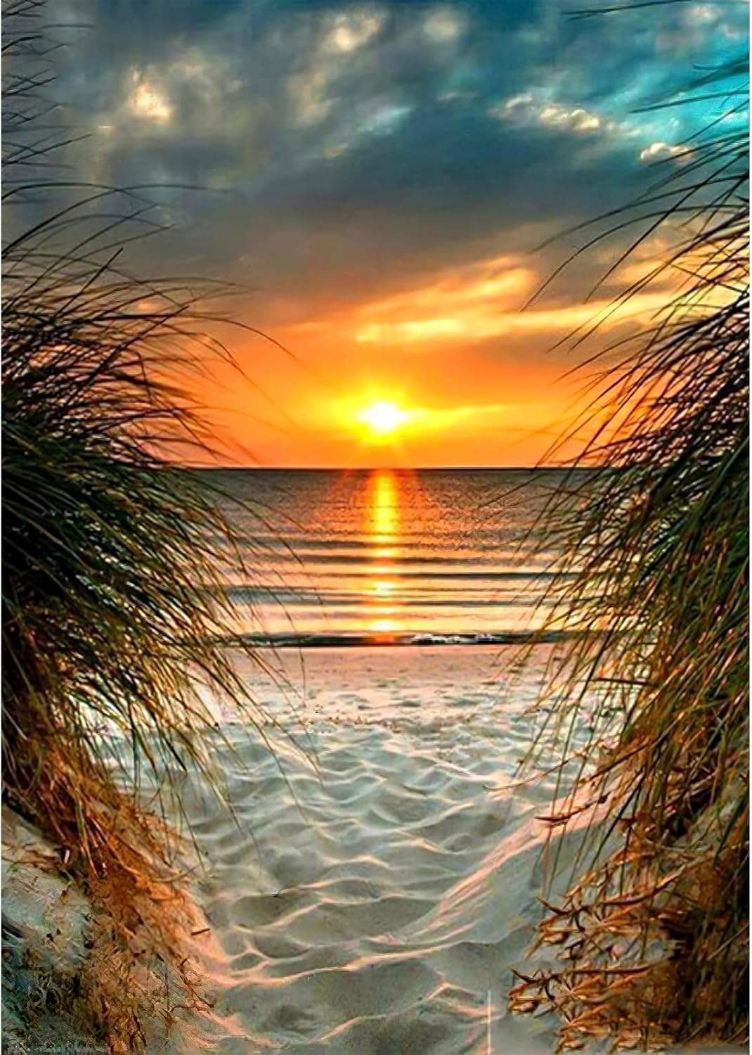 5D Diamond Painting Kit for Adults – Beach Sunset Full Drill DIY Diamond Art, Sea Scene Crystal Picture for Home Wall Decor, 12×16 Inch