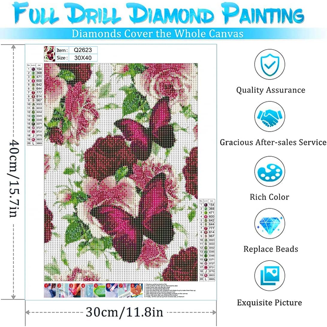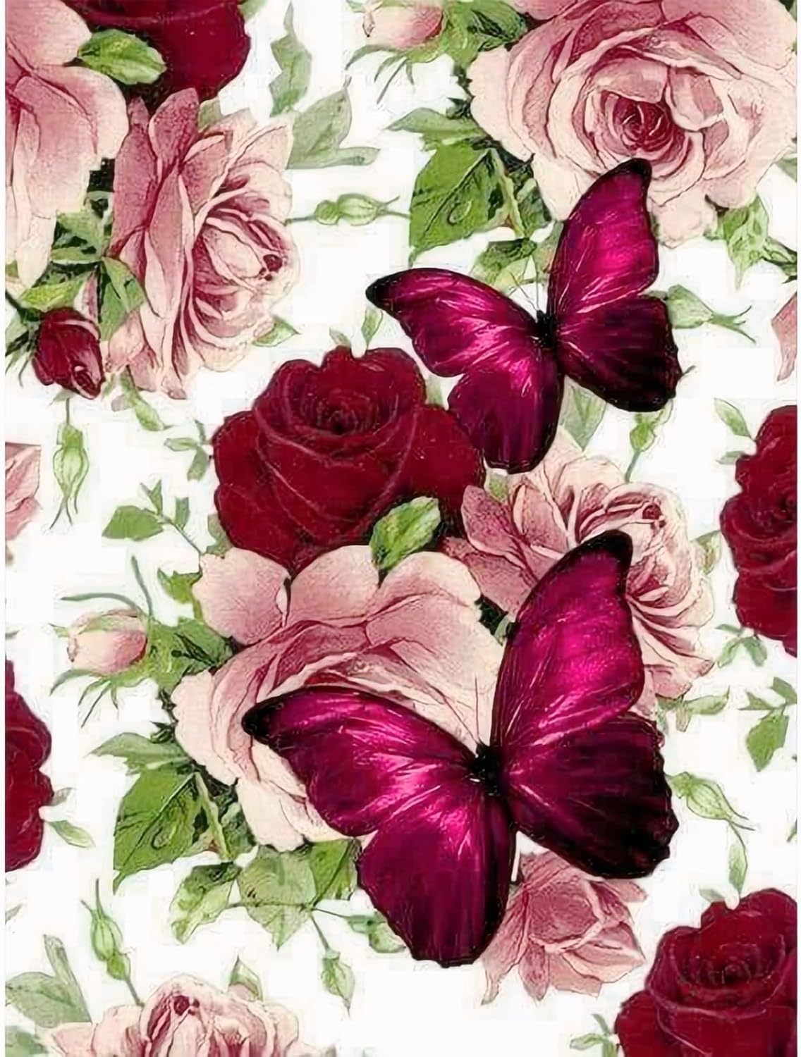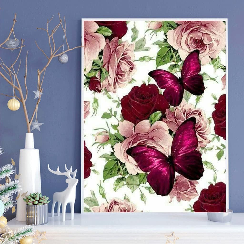 5D Diamond Painting Kits Adults DIY Diamond Painting Canvas Full Roses Butterflies Painting Art Kit for Beginners Home Art Decoration Hanging Painting 12" x 16"