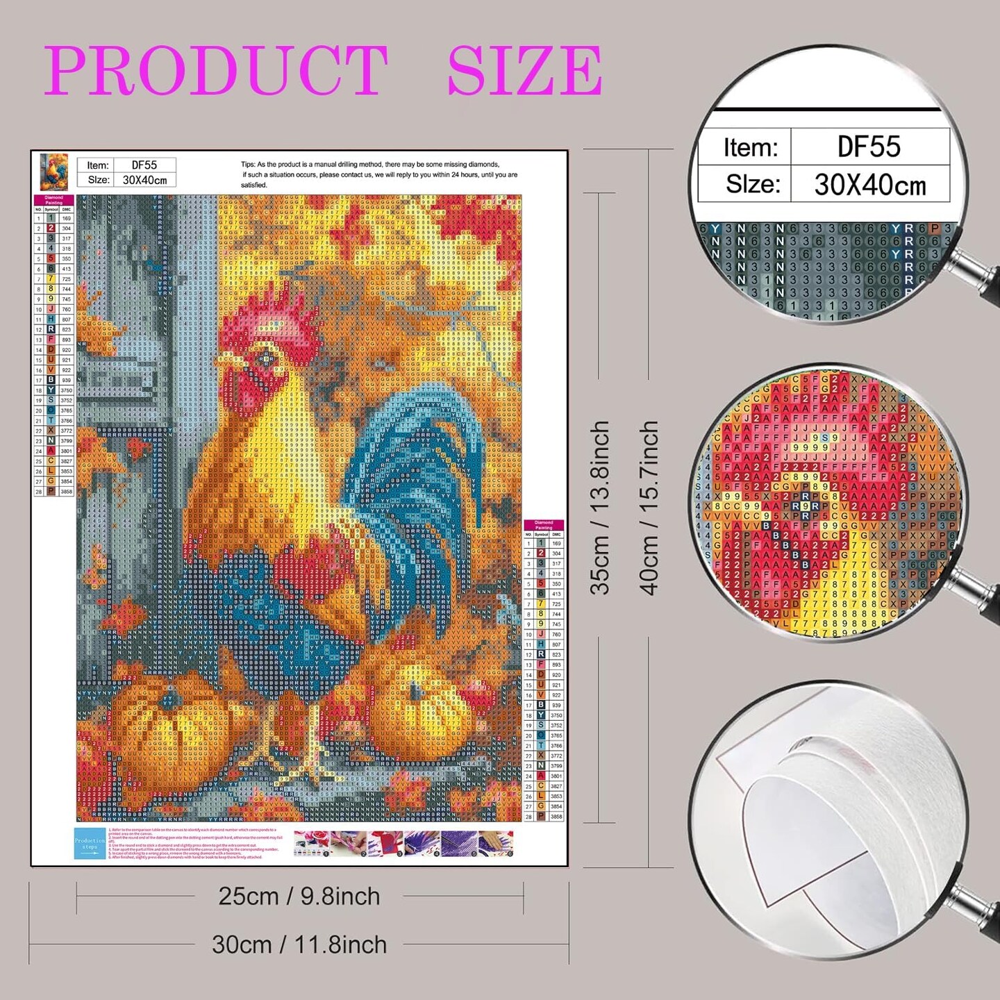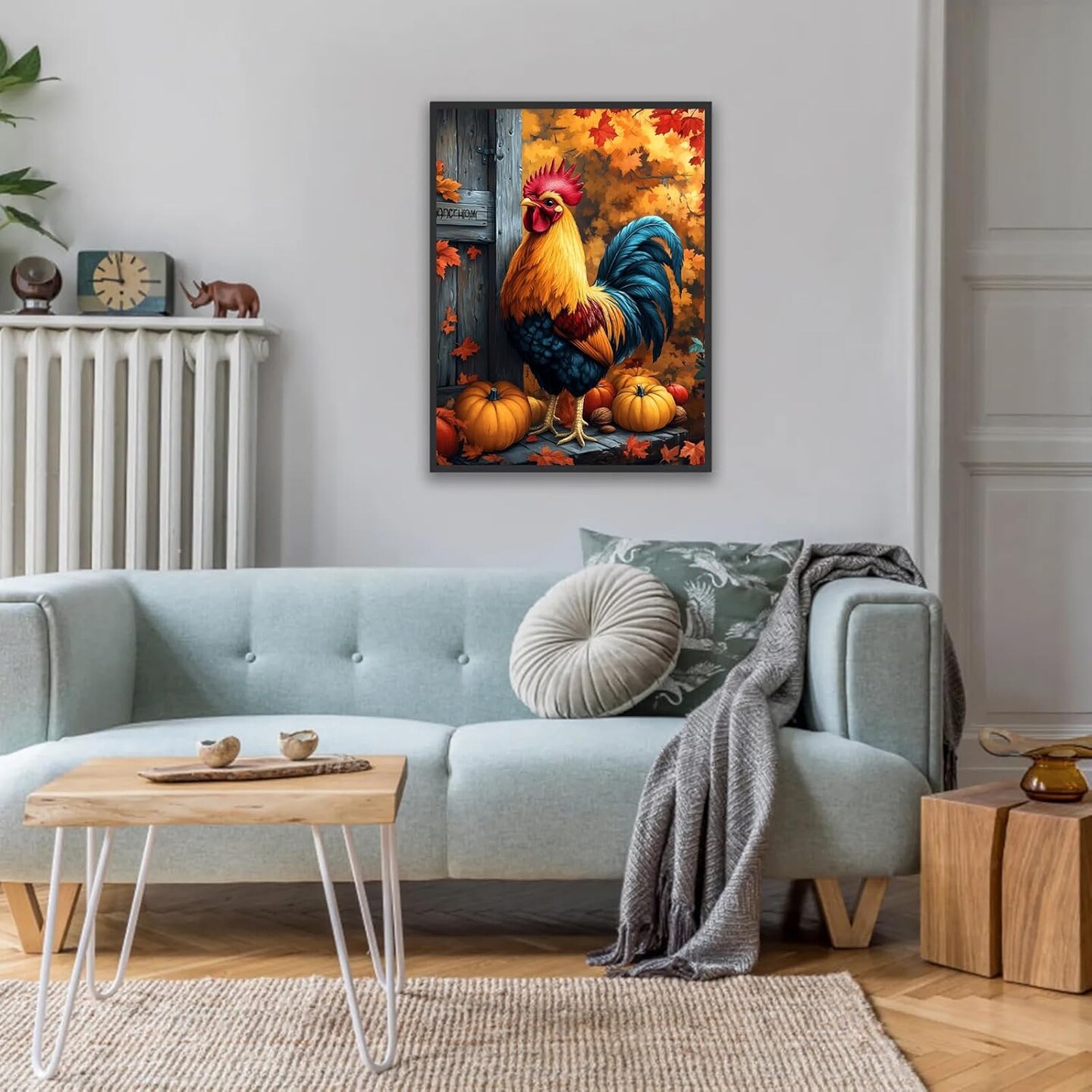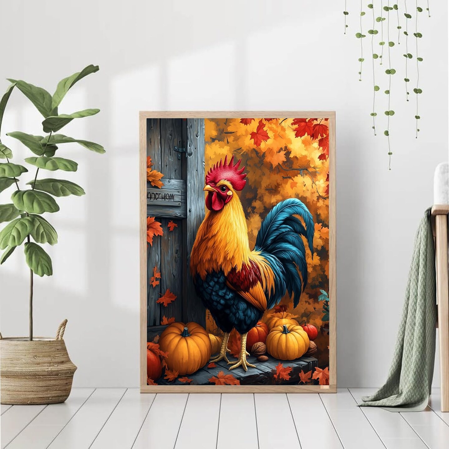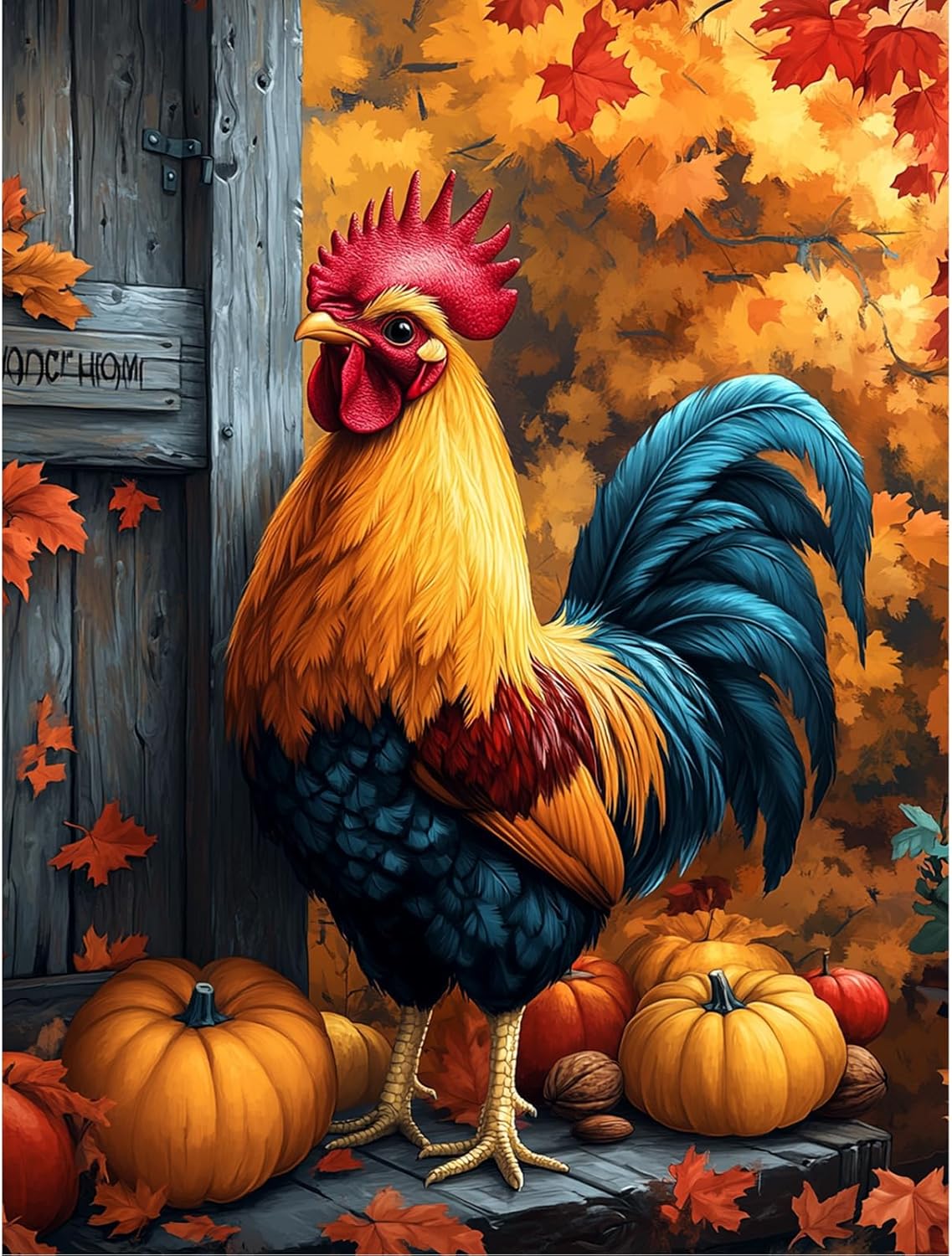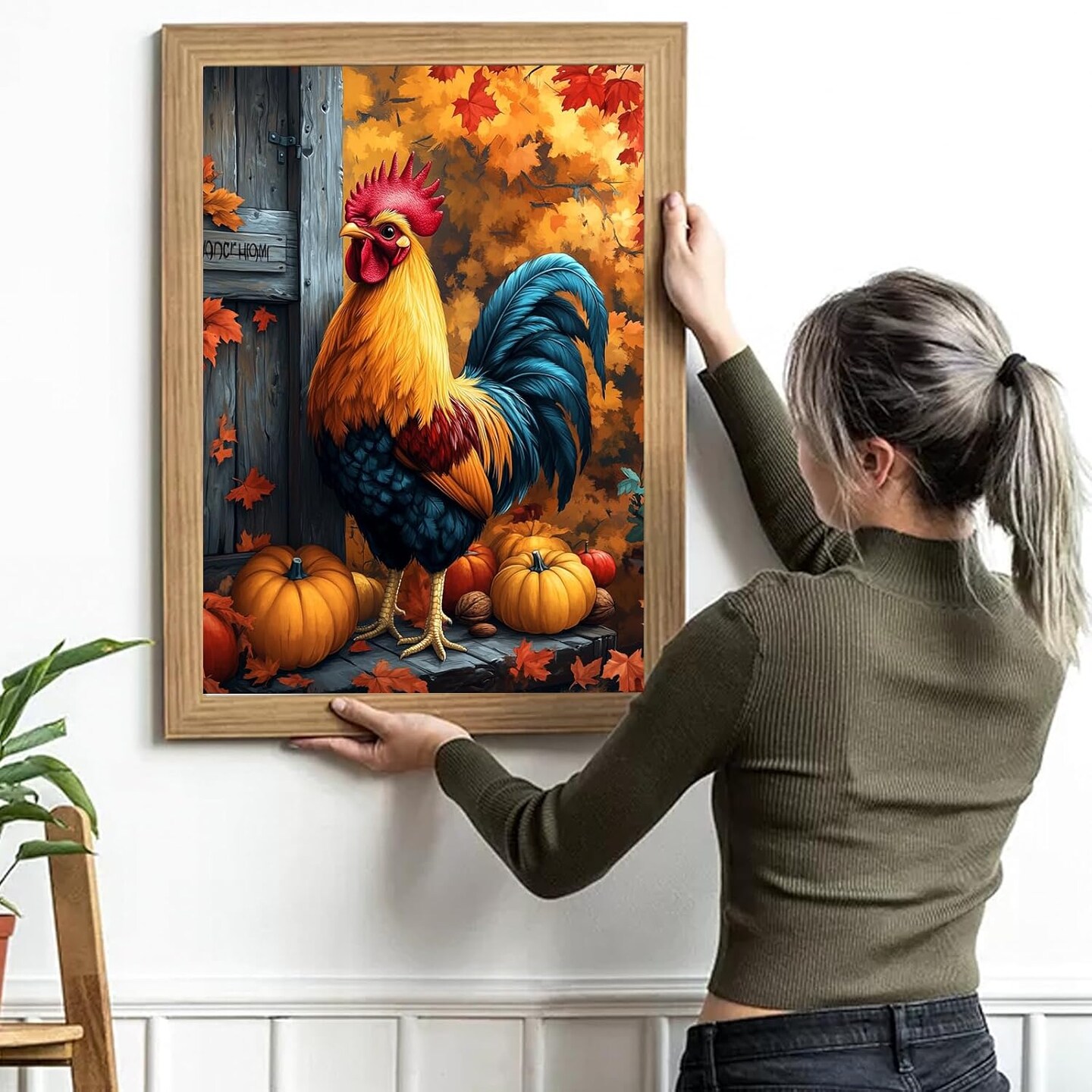 5D Diamond Painting Kits for Adults, Rooster Diamond Art Fall Kit for Beginners, Full Round Drills Pumpkin Chicken Diamond Dots on Canvas Painting by Diamonds for Wall Decor 12 x 16 Inches