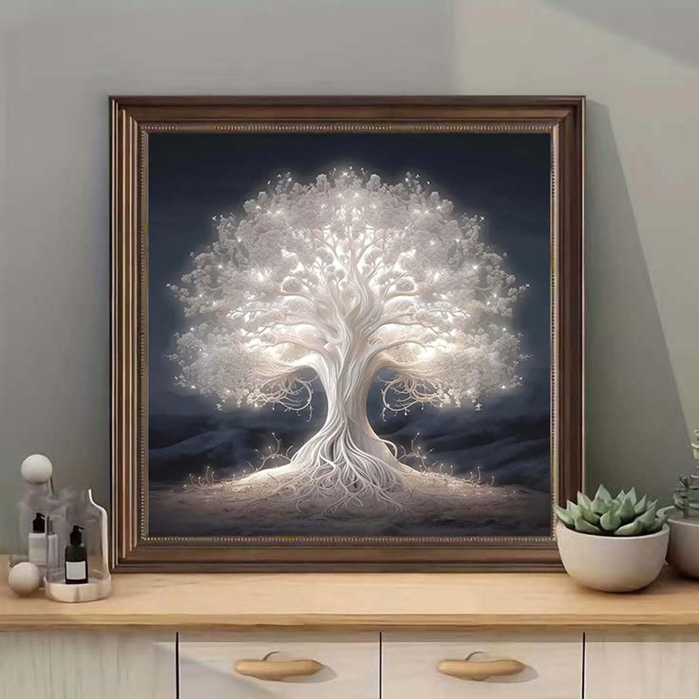 5D Diamond Painting Kits for Adults,Diamond Art Glowing White Tree of Life Landscape Painting Kits for Adults DIY Round Drill Art Craft Kits for Home Wall Decor