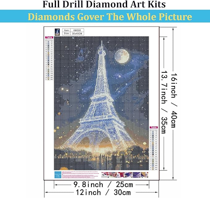5D Diamond Painting Kits for Beginners, Eiffel Tower Diamond Art Kits for Adults, DIY Landscape Full Round Drill Paint by Diamonds Dot Gem Art for Adults, Home Wall Decor 12x16 Inch