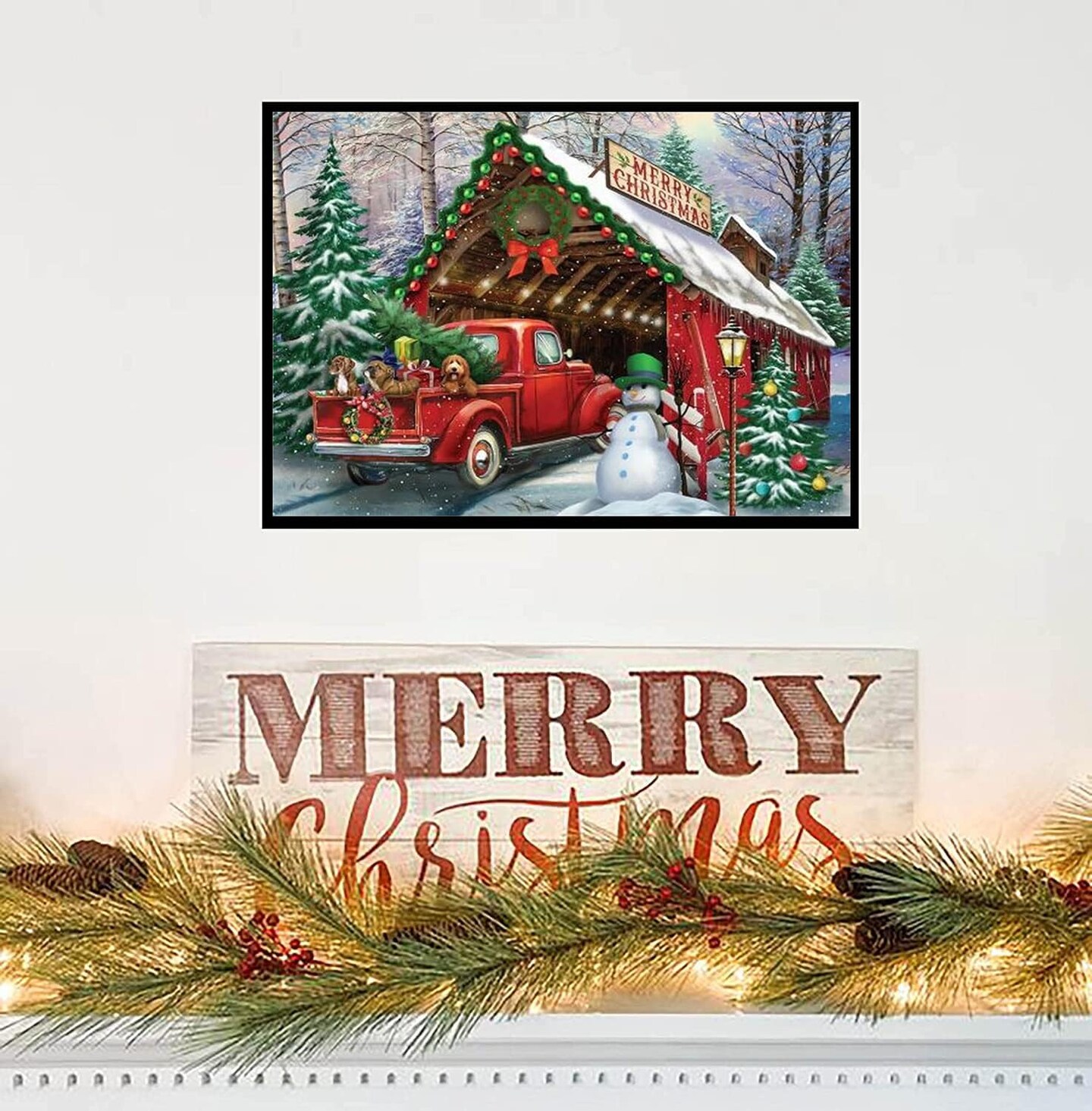 5D DIY Christmas Diamond Painting Kits for Adults Kids, Christmas Snowy Full Drill Embroidery Cross Stitch Crystal Rhinestone Paintings Pictures Arts Wall Decor Painting Dots Kits 15.7X11.8 IN