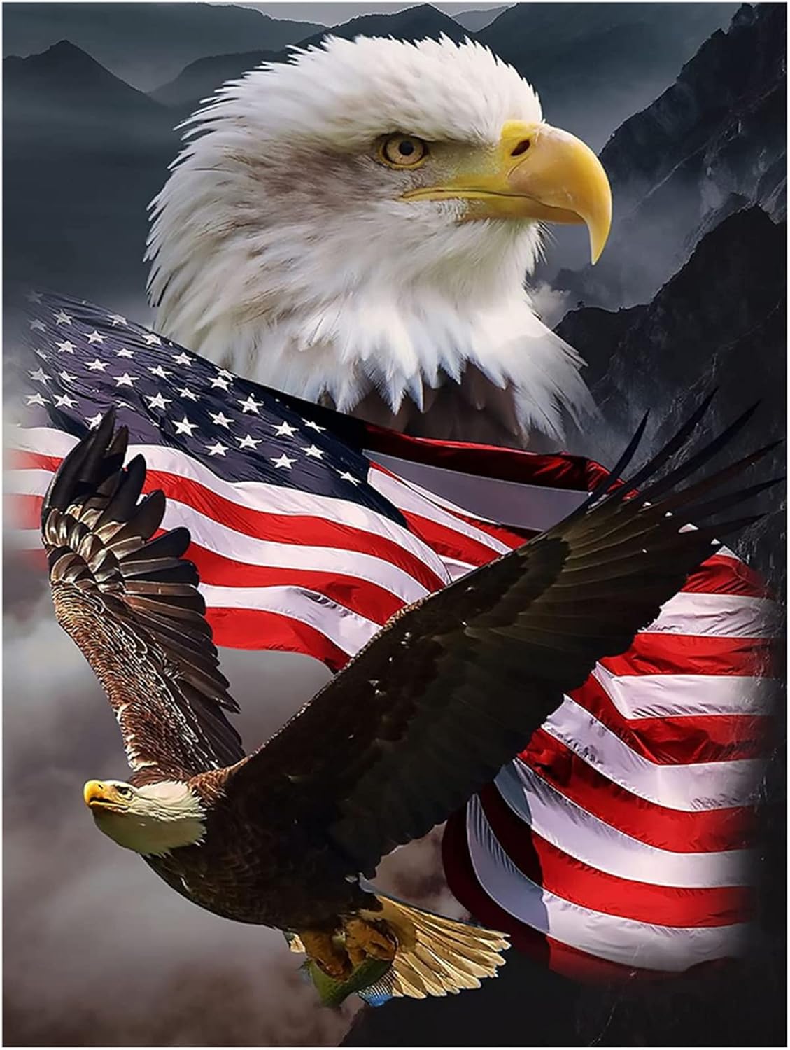 5D DIY Diamond Painting Kits for Adults Kids Eagle and Flag Full Drill Embroidery Cross Stitch Crystal Rhinestone Paintings Pictures Arts Wall Decor Painting Dots Kits 15.7X11.8 in