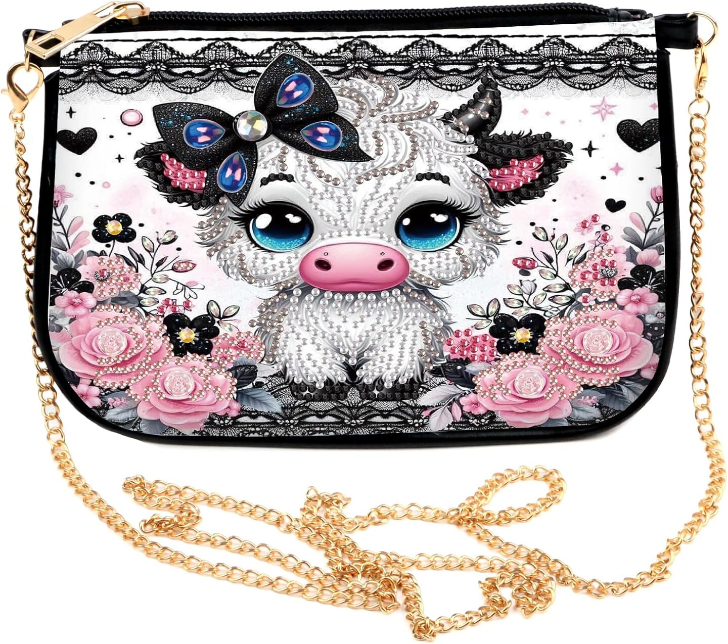 5D DIY Diamond Painting Purse, Rose Calf Diamond Art Kit Cosmetic Bag, Shoulder Zip, Can be Used as a Gift for Friends