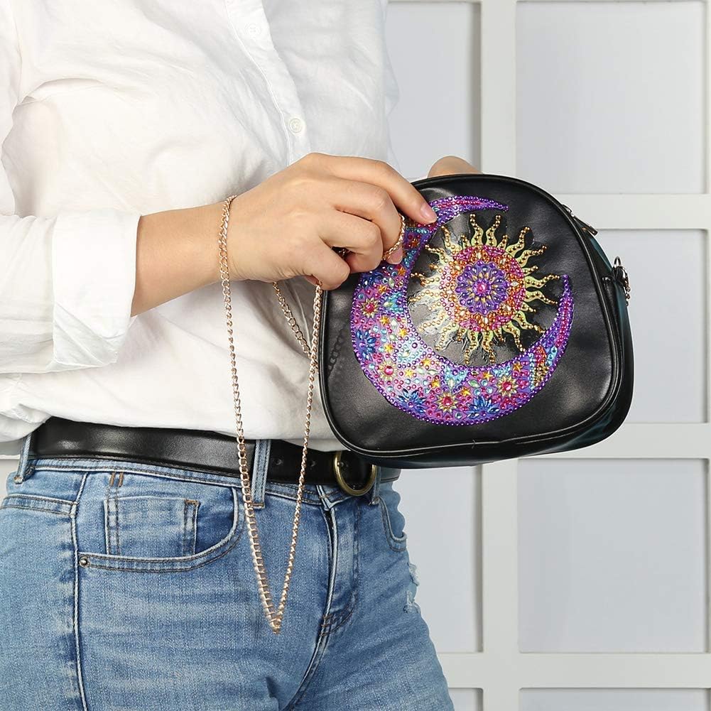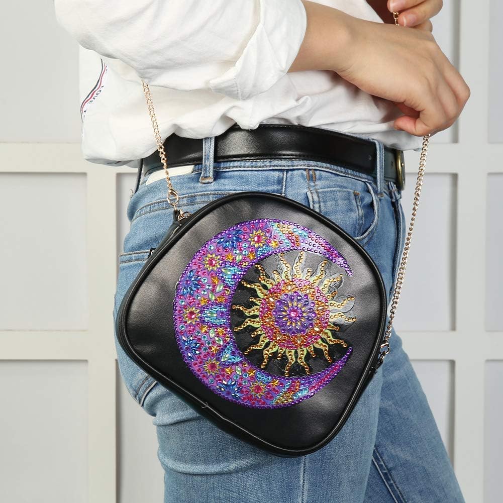 5D DIY Special Shaped Handbag Diamond Painting Sun and Moon Crystal Rhinestone Leather Diamond Art Purses with Chain for Adults(Size:7.5''x7'')
