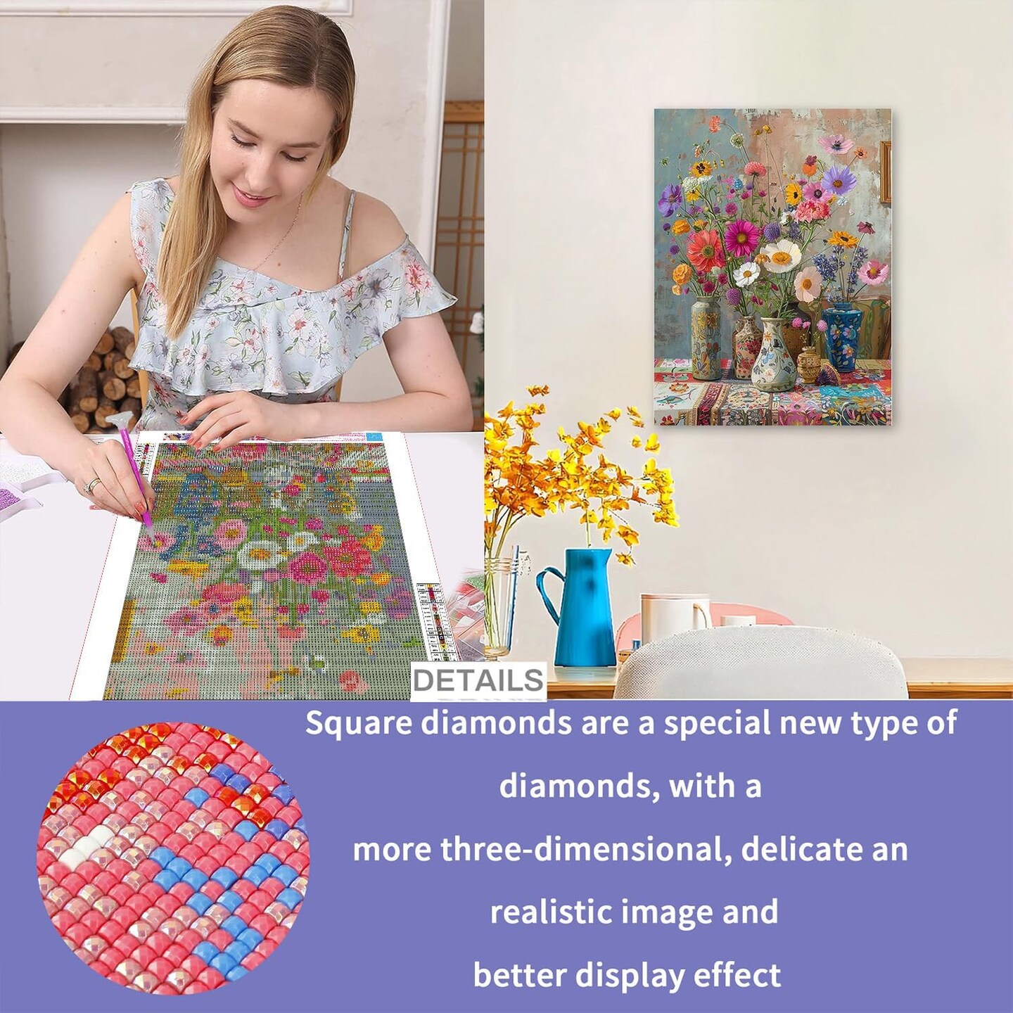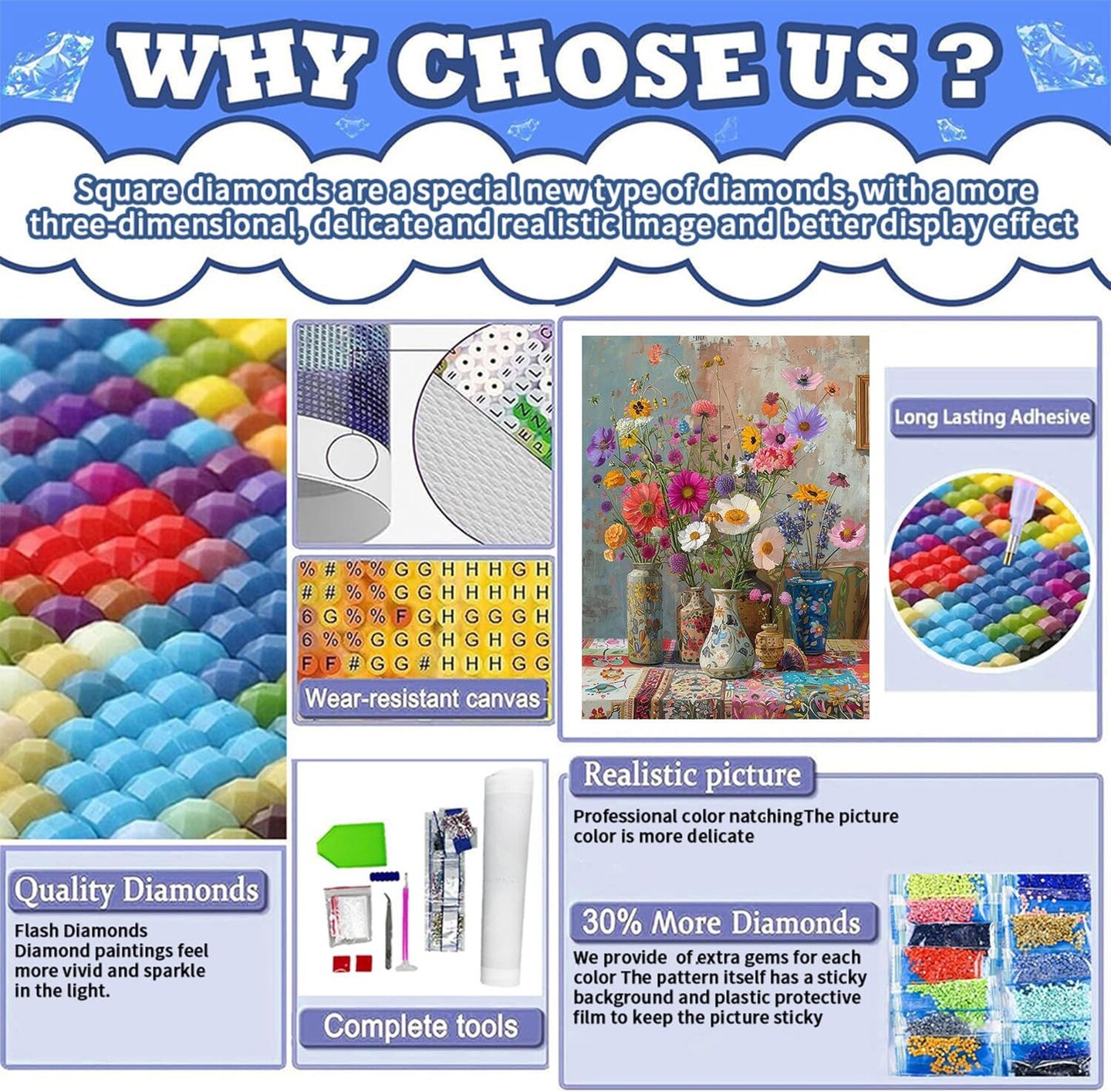 5D Full Square Diamond Art Kits for Adults with Tools (Flower01) 7.8 x 5.5 x 0.59 inches