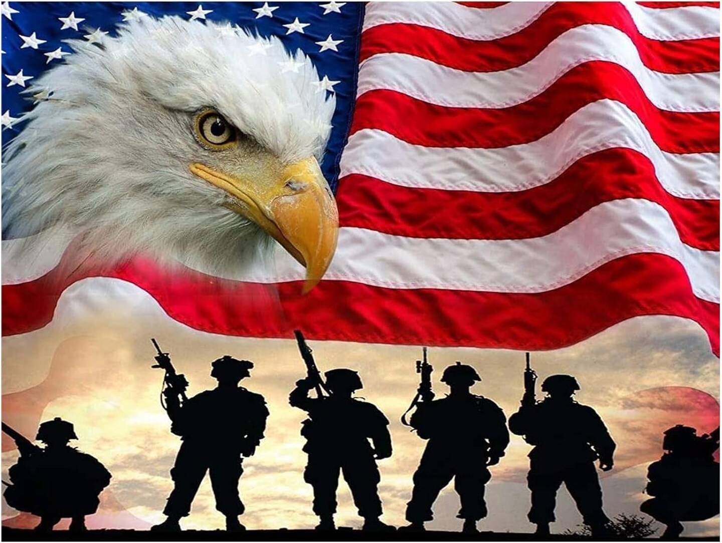 5D Paint-by-Numbers Kit featuring a patriotic national flag and eagle design—full round diamond DIY art for home wall décor, 15.7×11.8 inches.