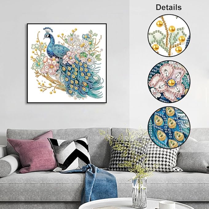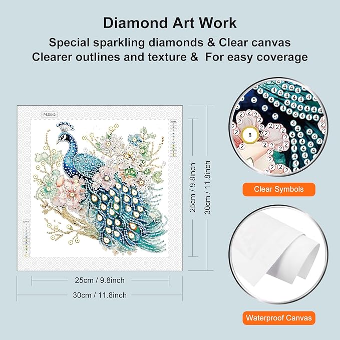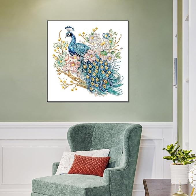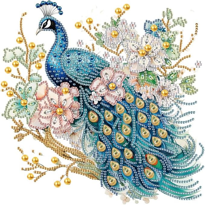 5D Special Shape Diamond Art Kits for Beginners, Diamond Painting Kits for Adults Peacock, Crystal Rhinestones Diamond Painting for Home Wall Decoration Gift 12×12inch/30×30cm, Flower