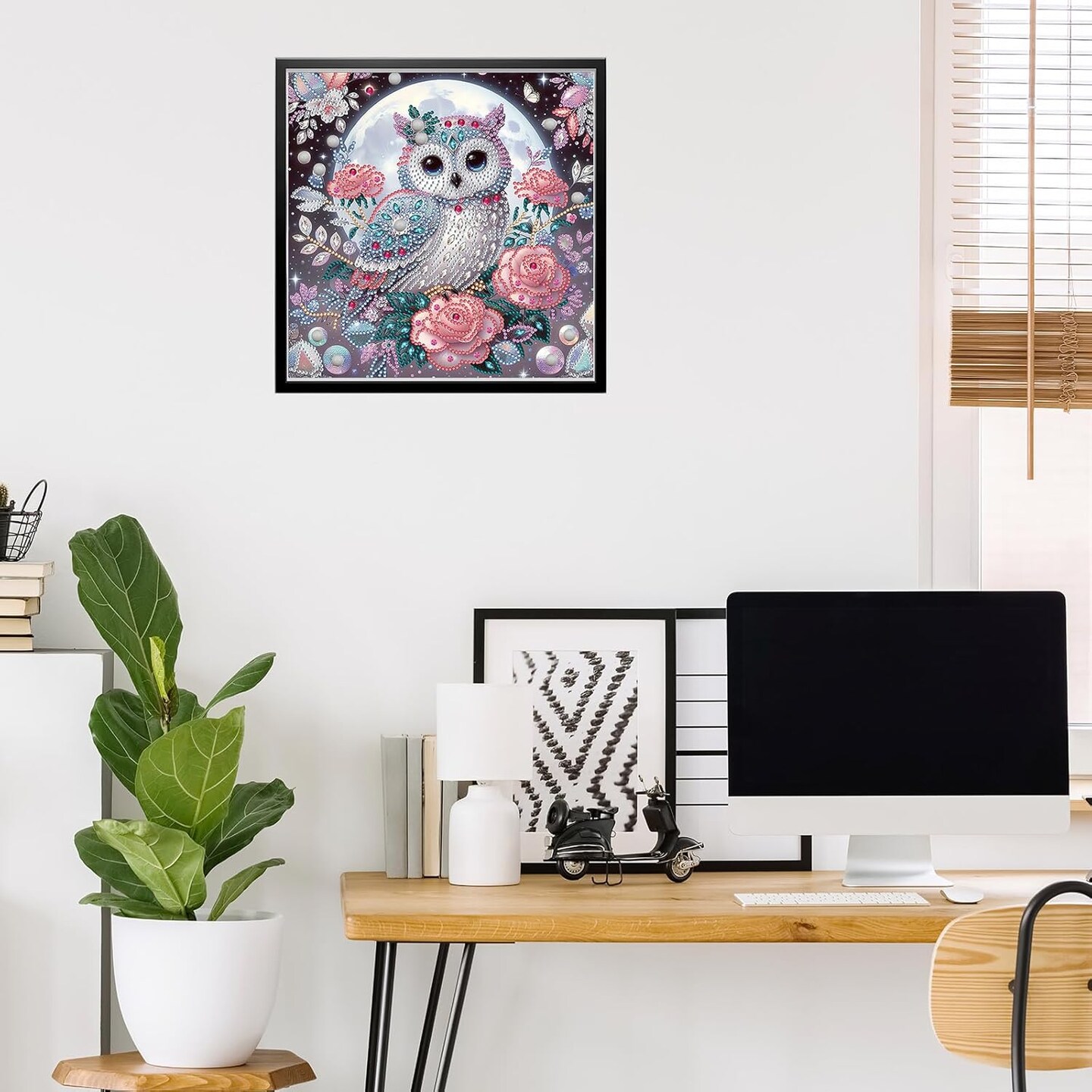 5D Special Shape Diamond Art Kits for Beginners, Owl Diamond Painting Kits for Adults, Flowers Crystal Rhinestones Diamond Painting for Home Wall Decoration Gift 12x12inch